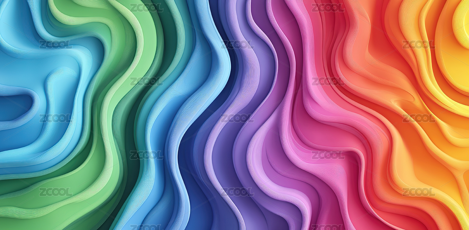 彩虹色波浪线条艺术背景