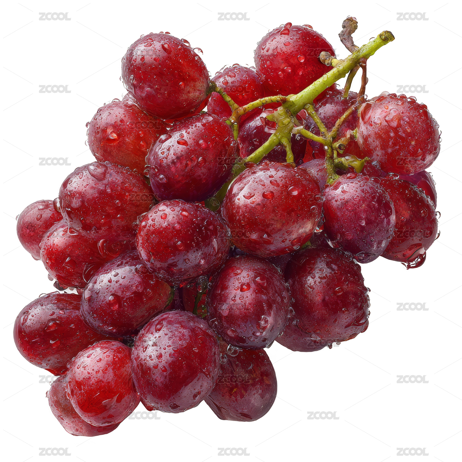 一串带水珠的鲜红葡萄