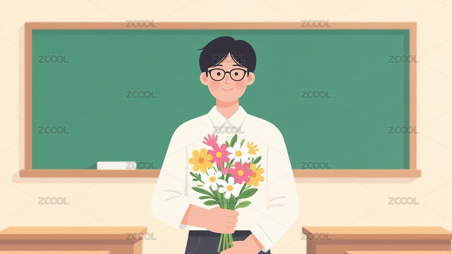 教室女士康乃馨书本黑板