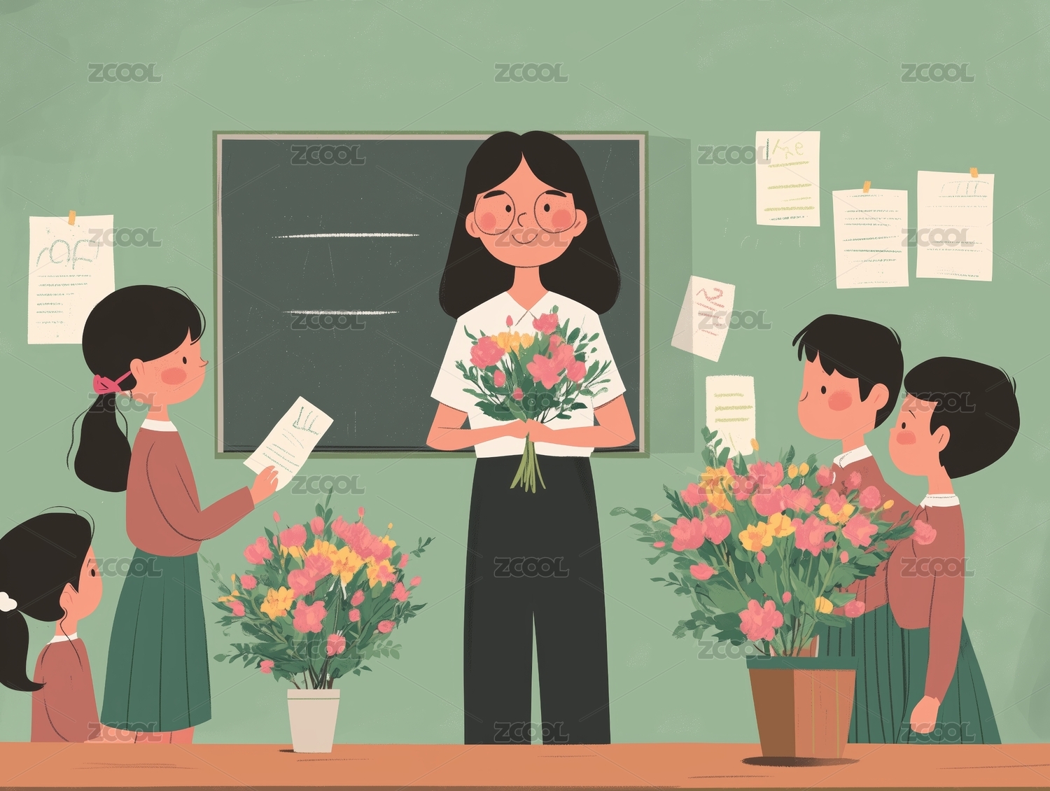 教师节老师收到鲜花的场景插画