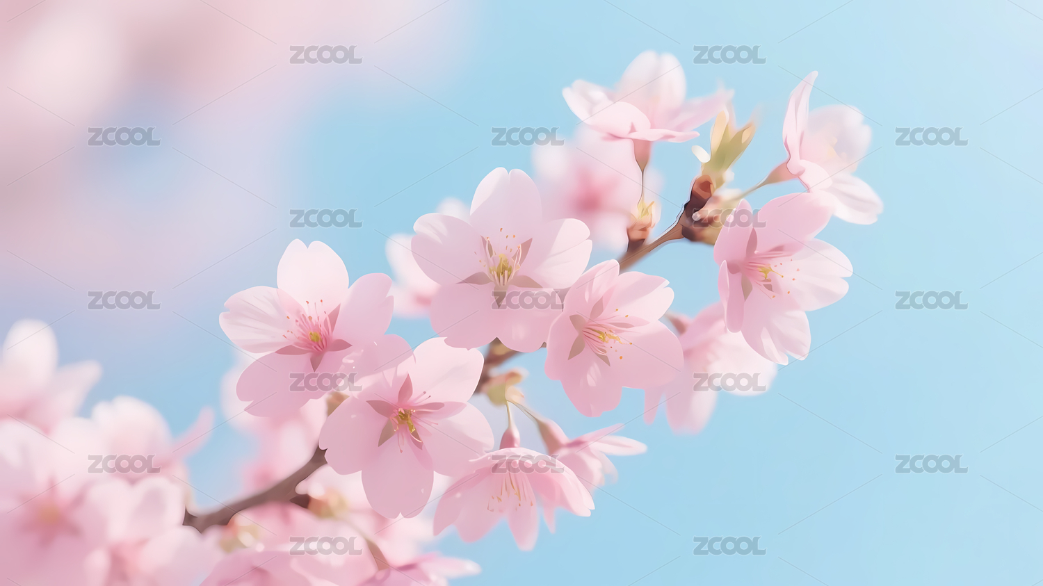 粉樱花与蓝天背景