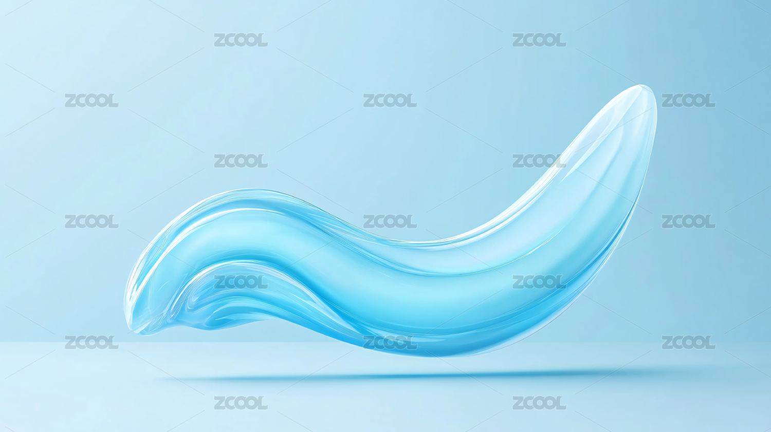 透明波浪物体与浅蓝背景