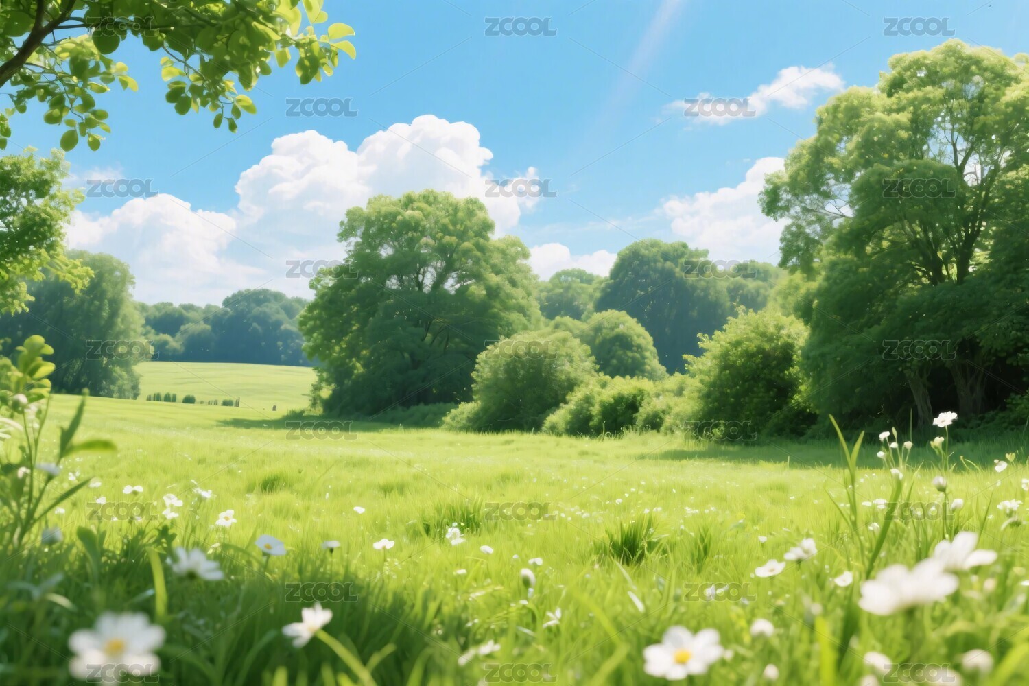 绿色,自然,清新,户外,宁静,花朵,蓝天,草地,树木,和谐