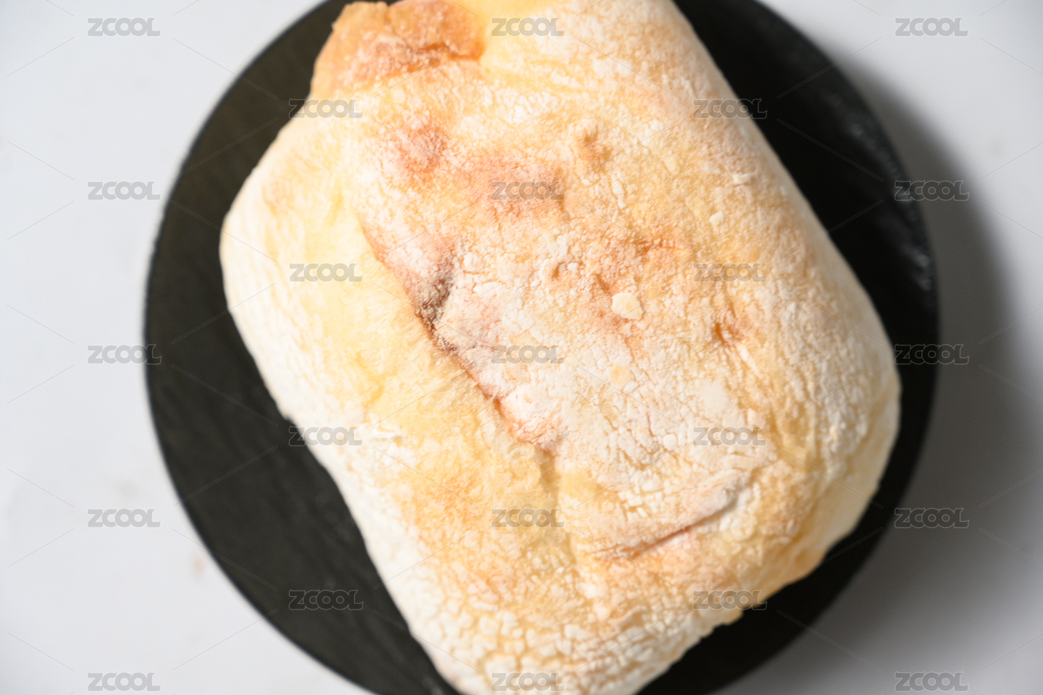 桌面上的盘子里的美味可口的恰巴塔面包