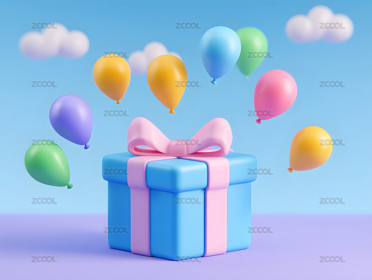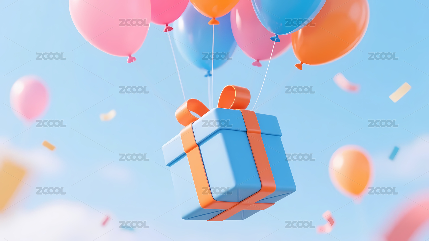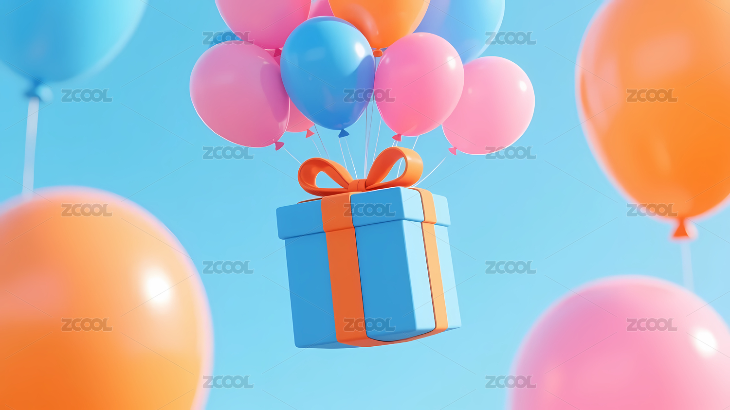 气球吊起的礼物3D渲染