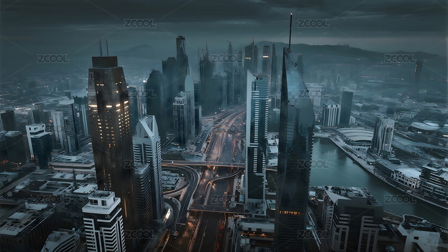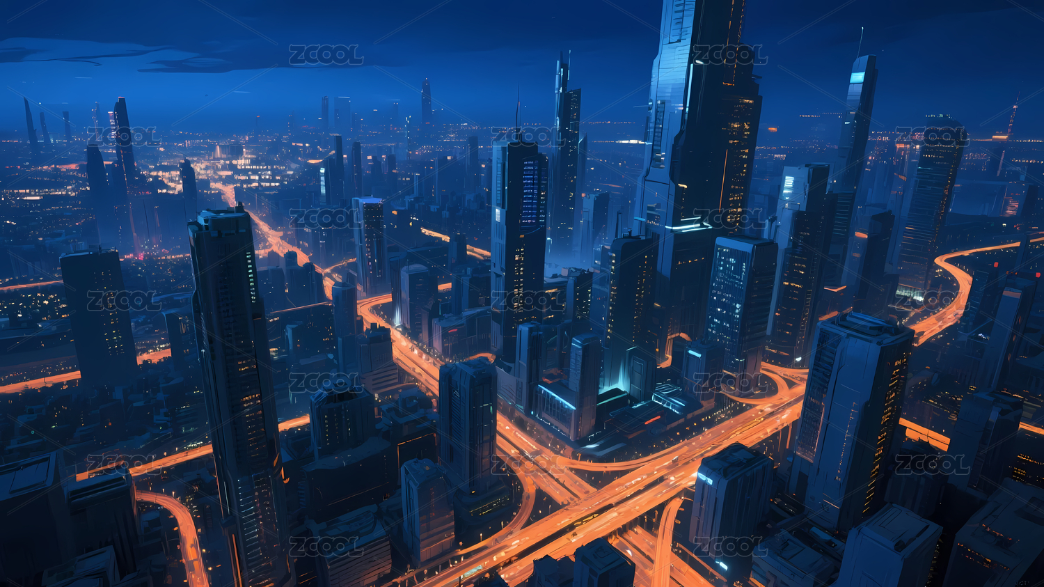 金融,都市,夜景,高楼,大厦,摩天楼,灯光,暖黄,道路,车流