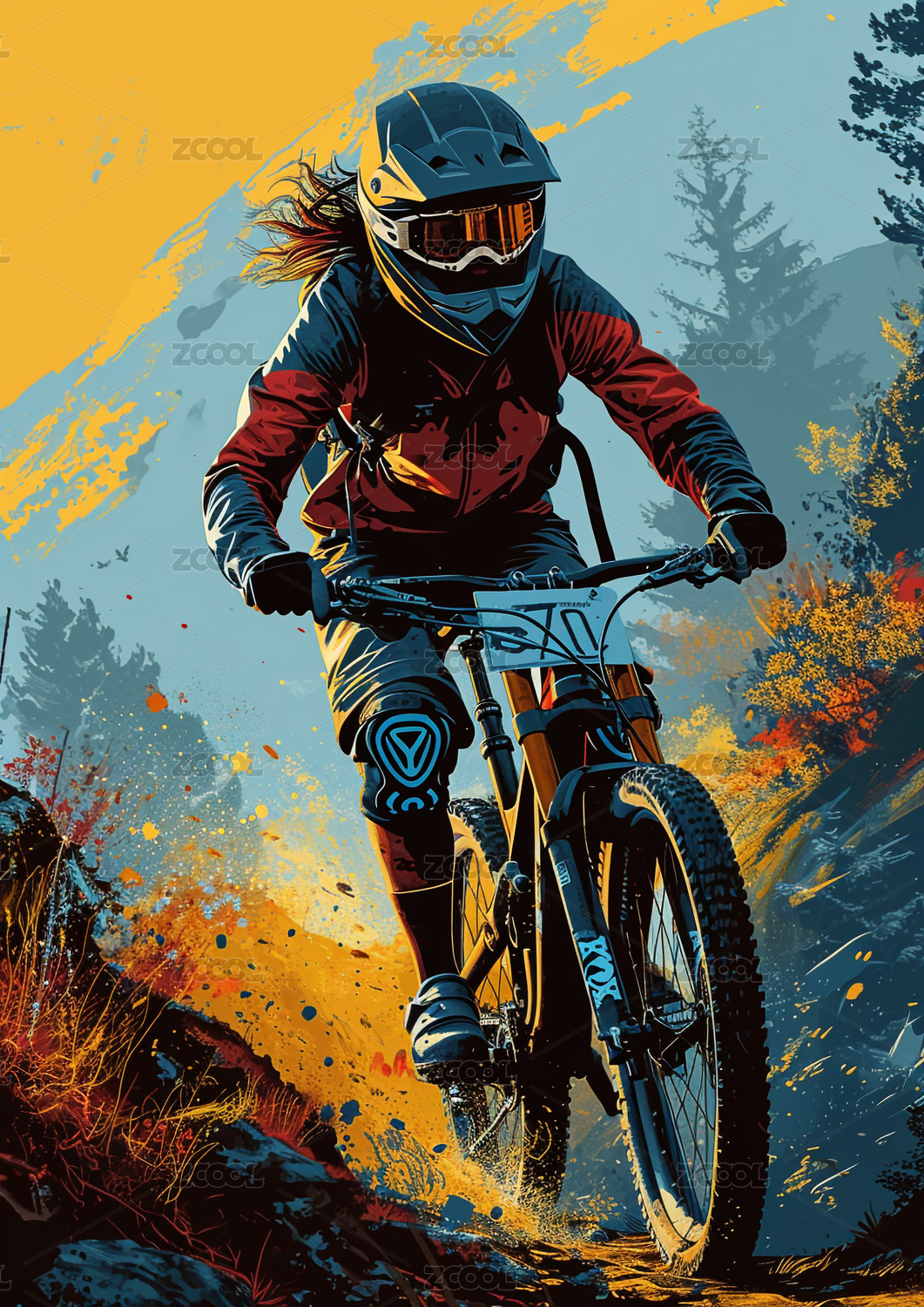 车手,骑行,山峰,插画,运动,户外,泥土,头盔,护具,冒险