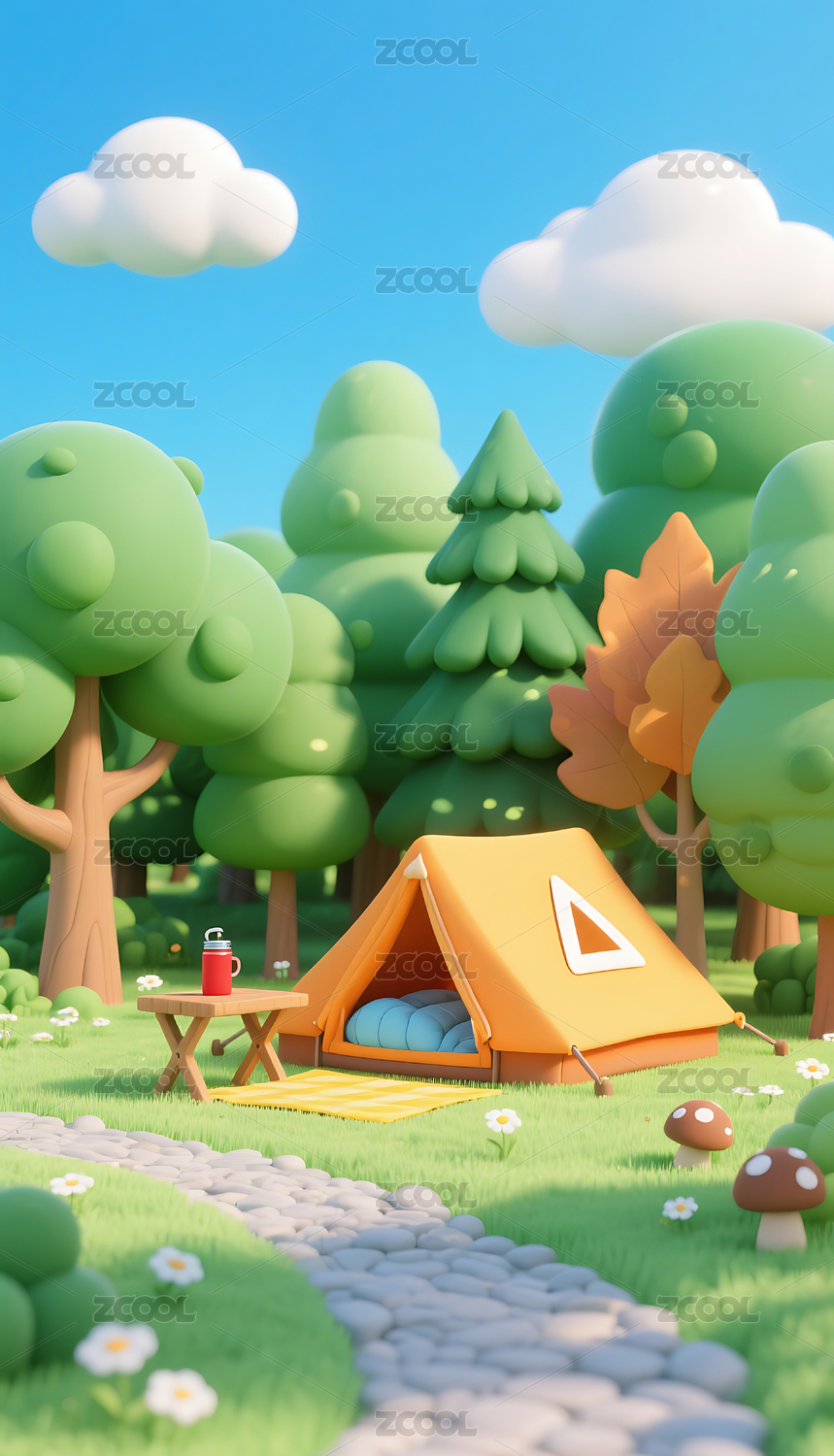 3D户外森林露营帐篷插画模型