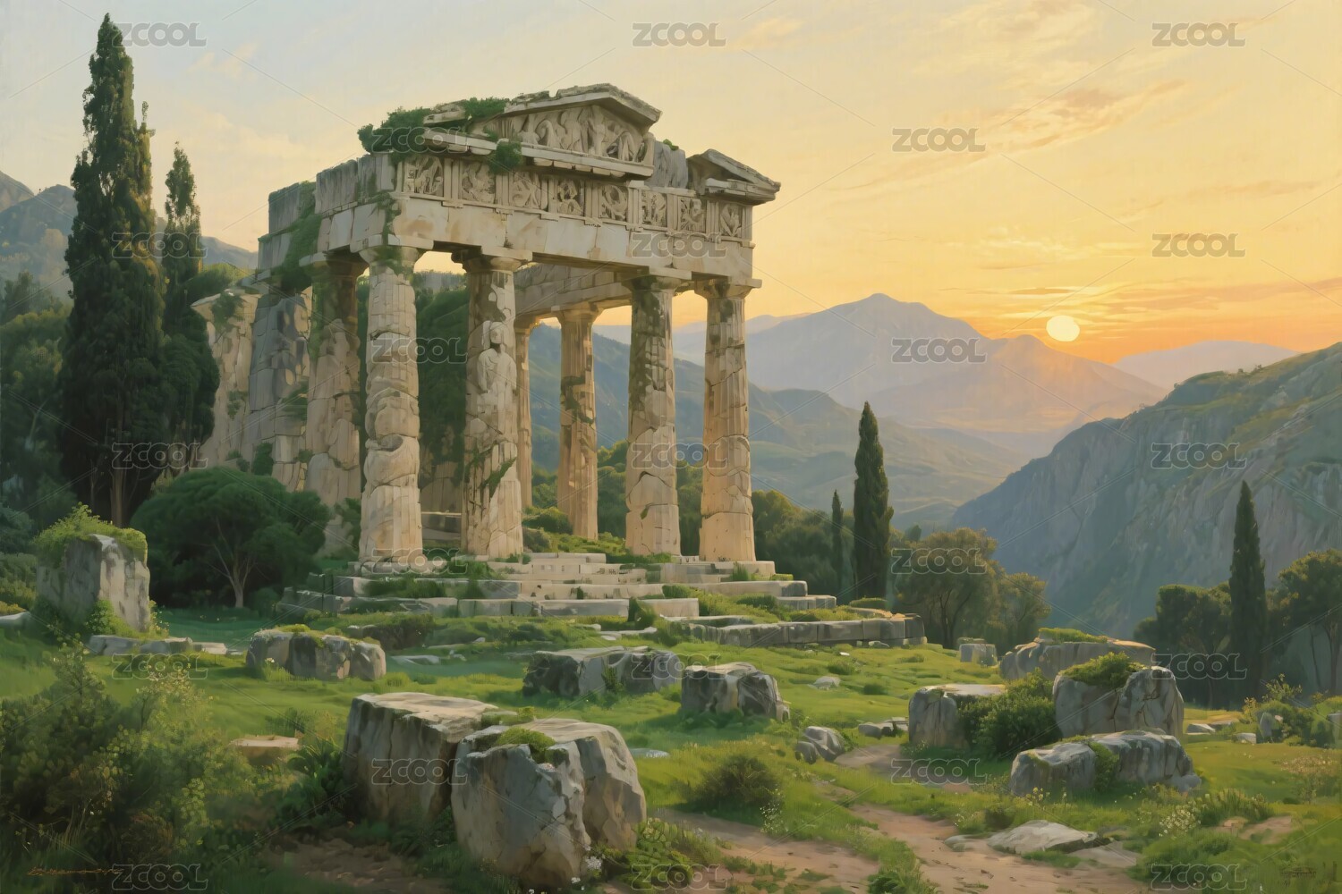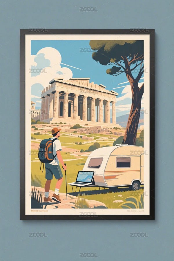 男子,房车,古典建筑,插画,风景,旅行,户外,休闲,艺术,装饰