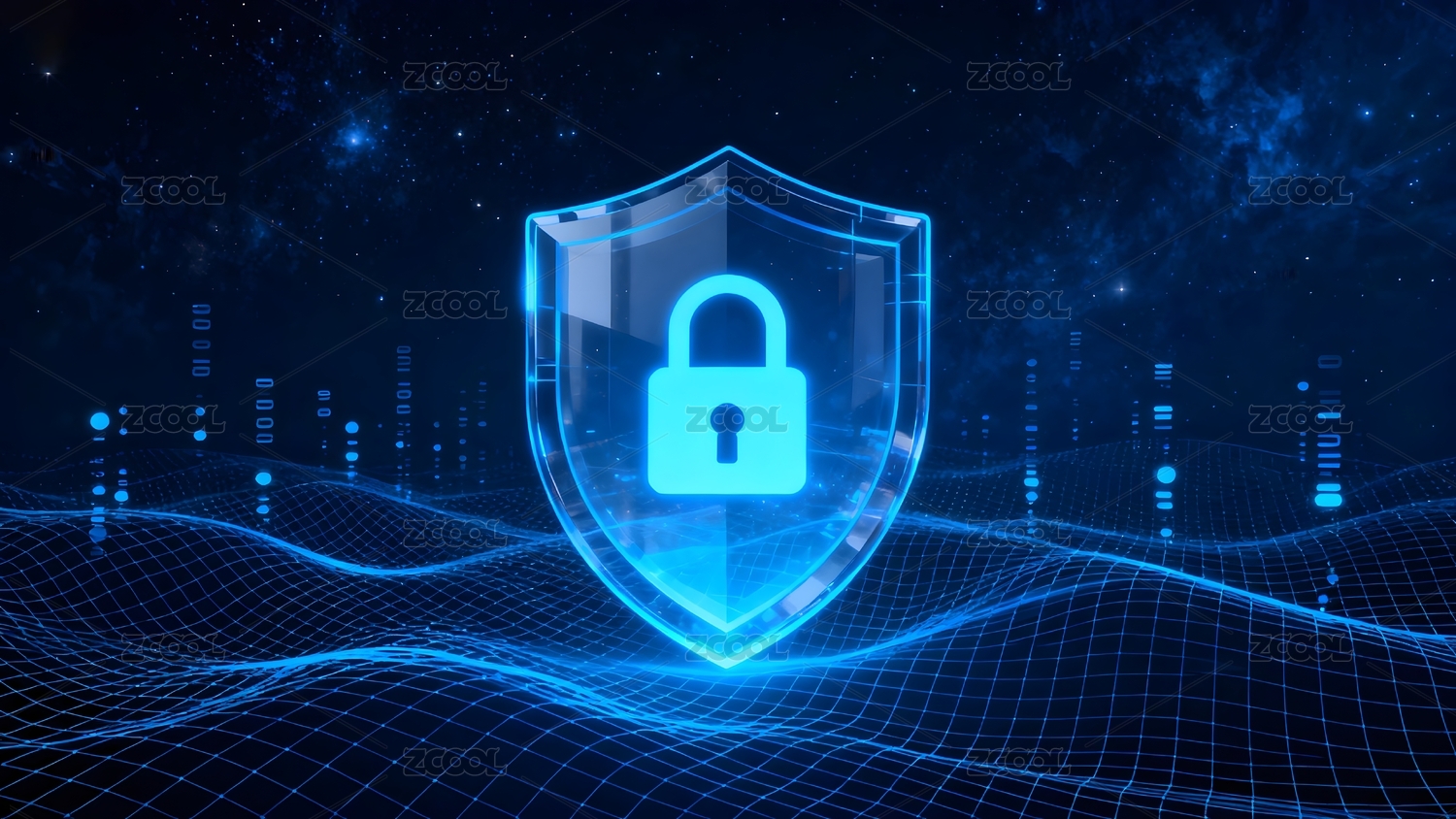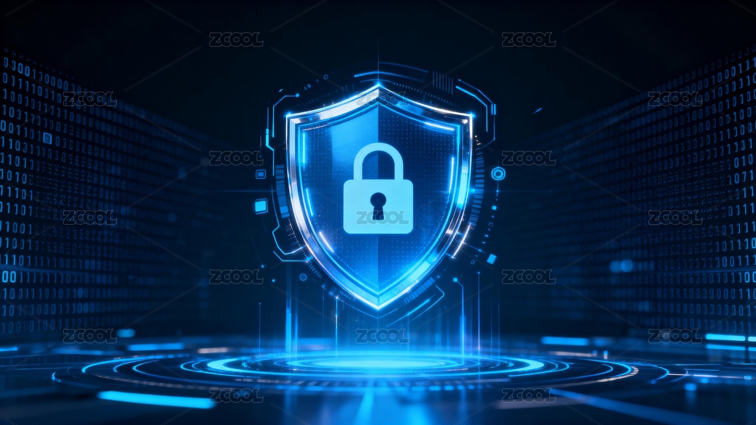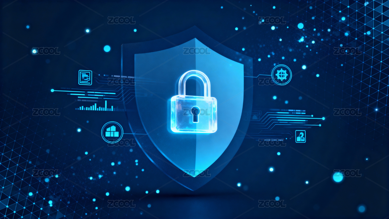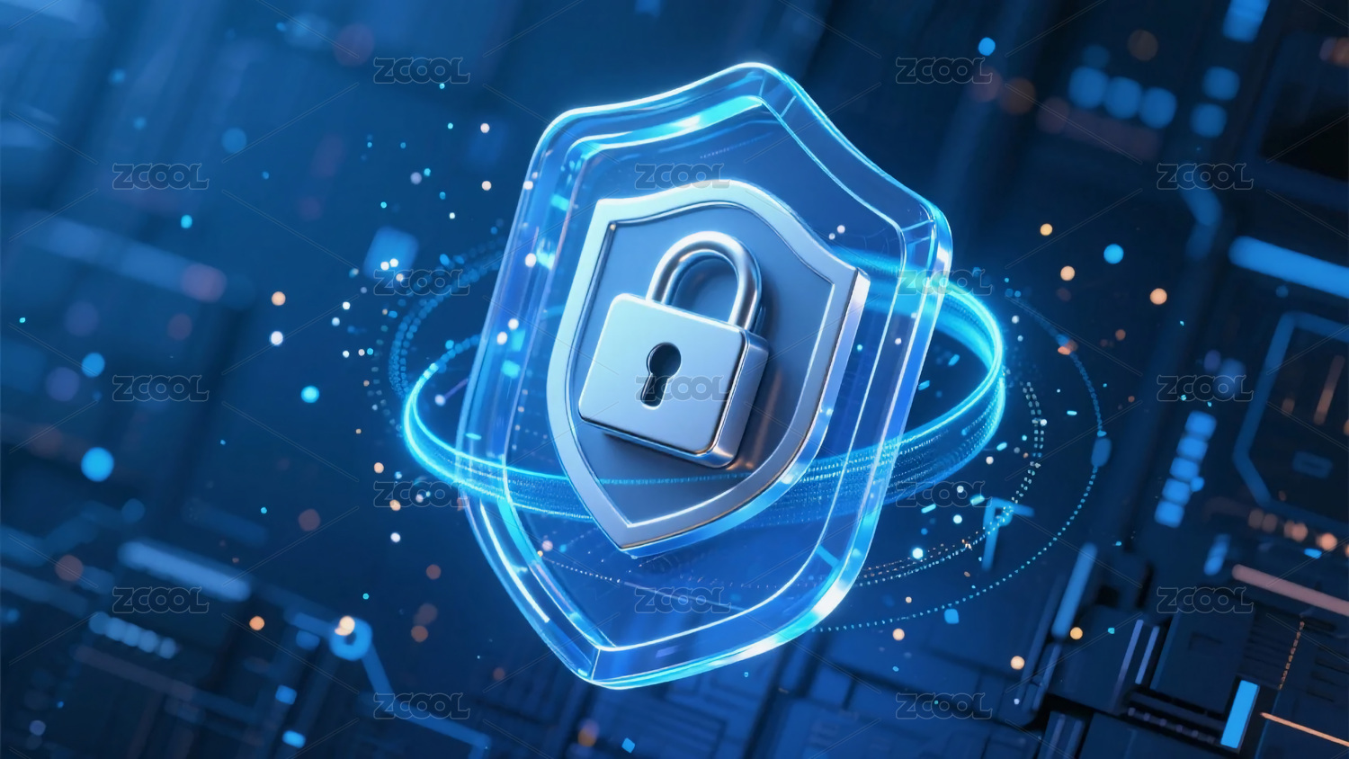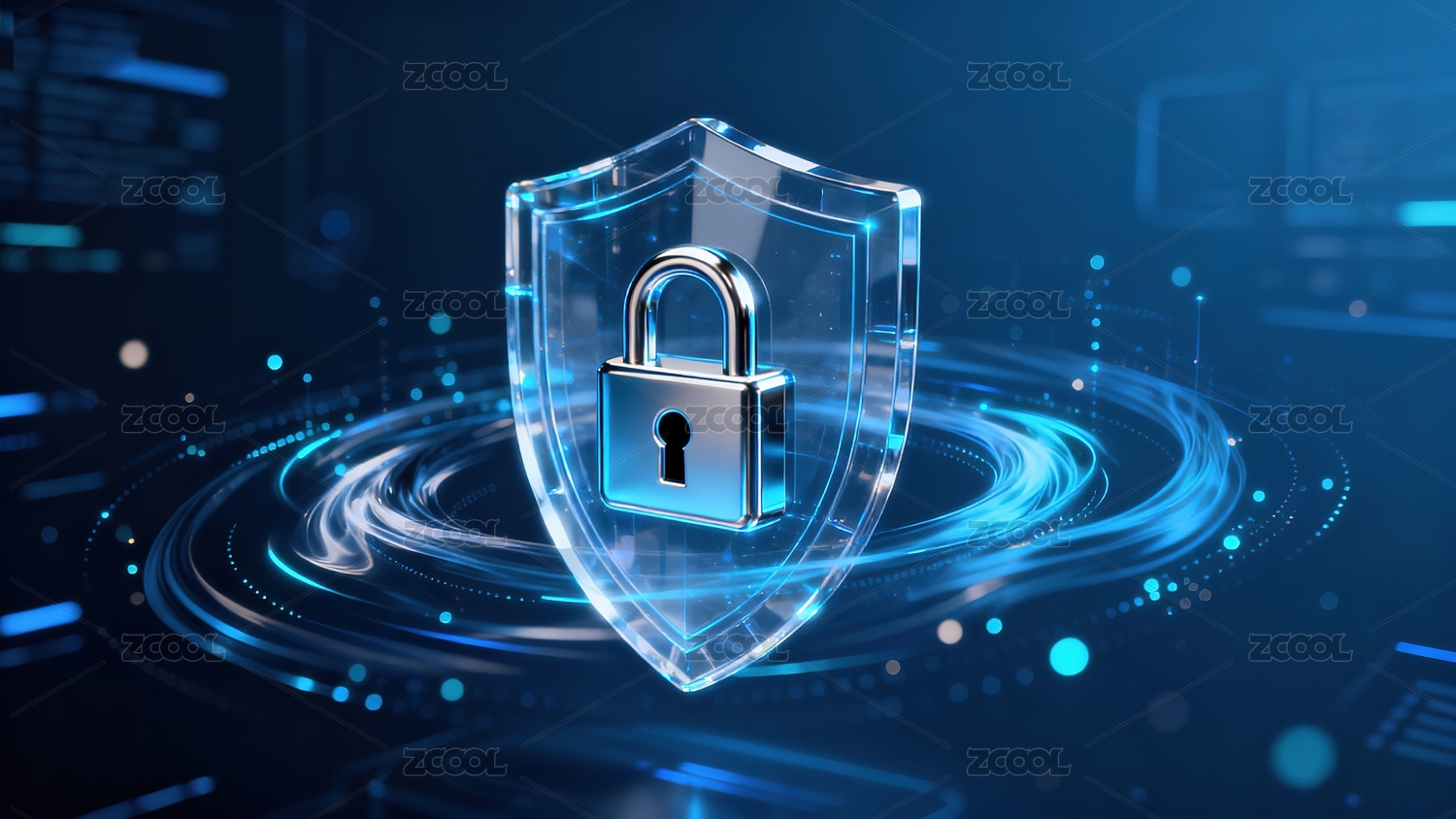 蓝色科技感透明盾牌锁头