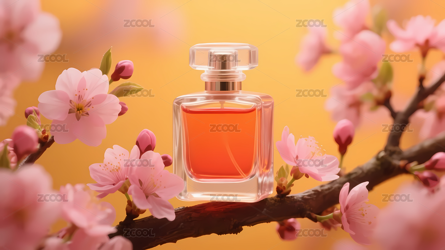 柔和,背景,透明,花朵,优雅,香水,装饰,瓶身,丝带,温馨