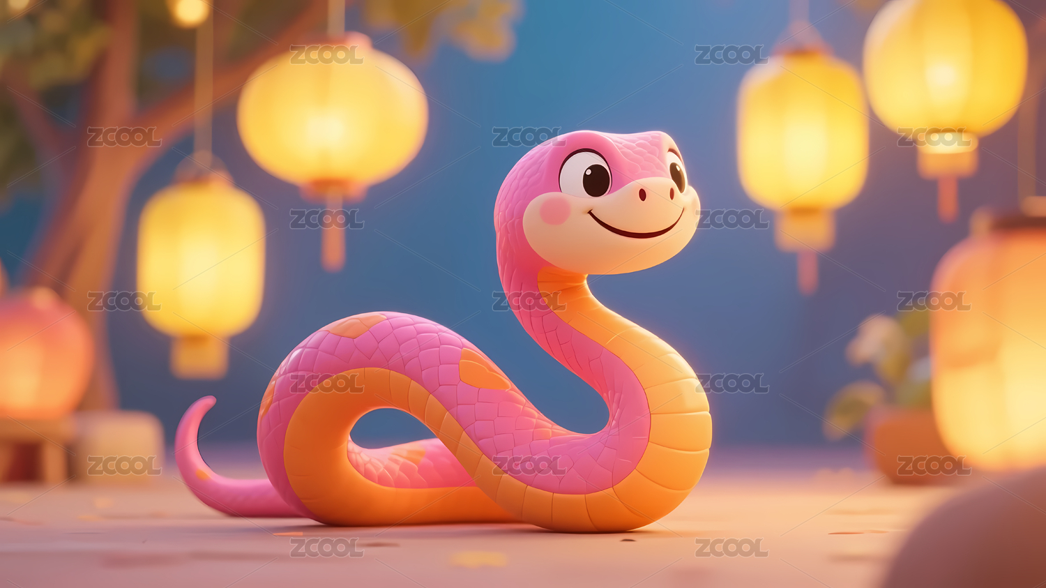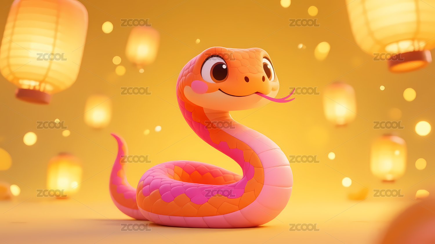 新年卡通3d蛇年灯笼金币喜庆场景形象