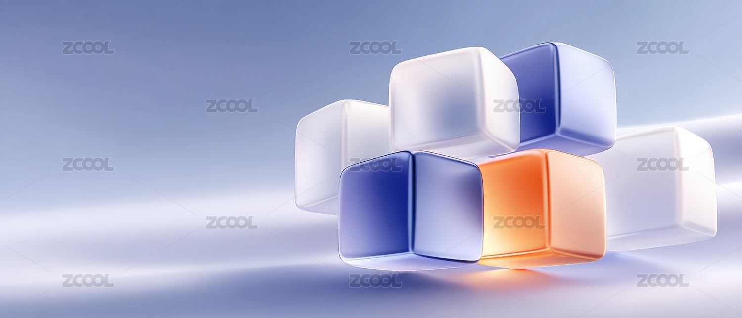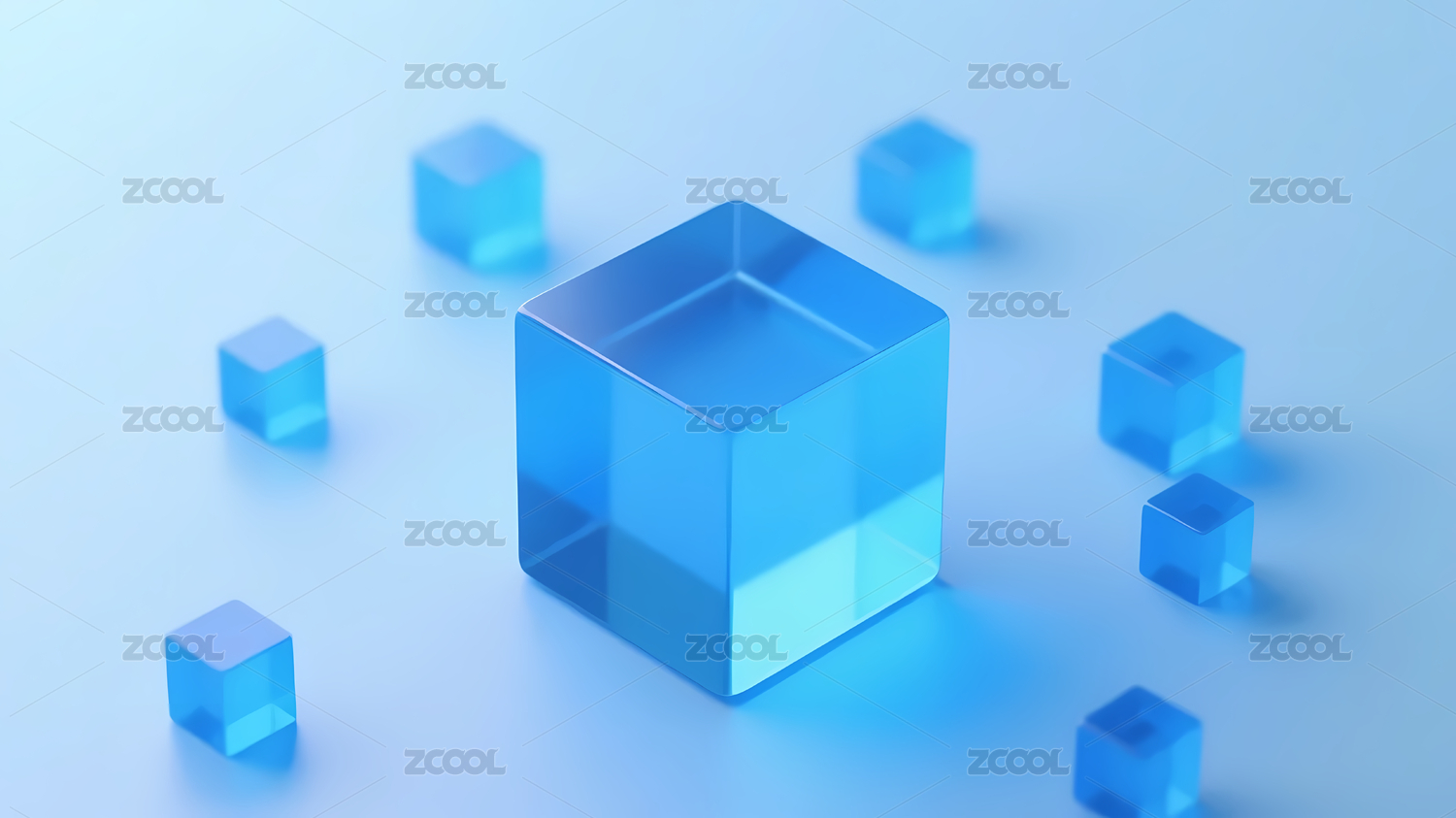透明蓝色立方体浅蓝背景