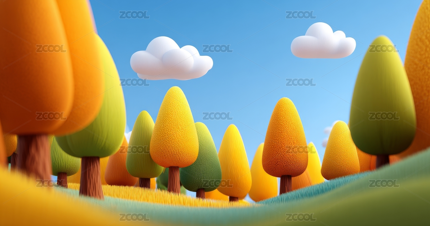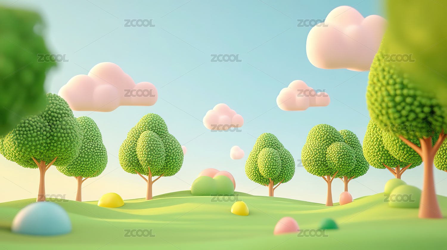 绿色羊毛毡毛绒毛线田野3D卡通立体插画