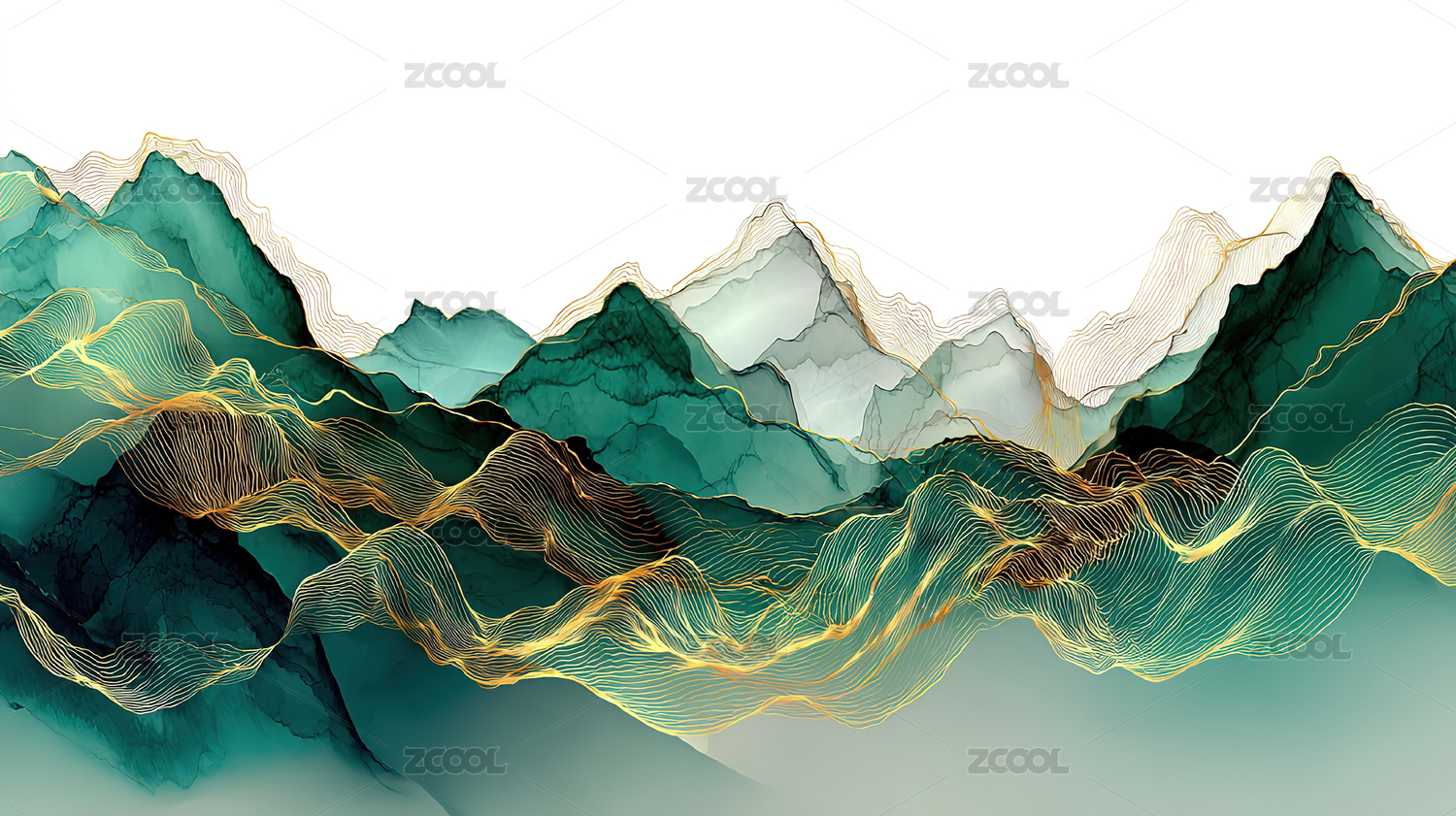 现代山水金线艺术