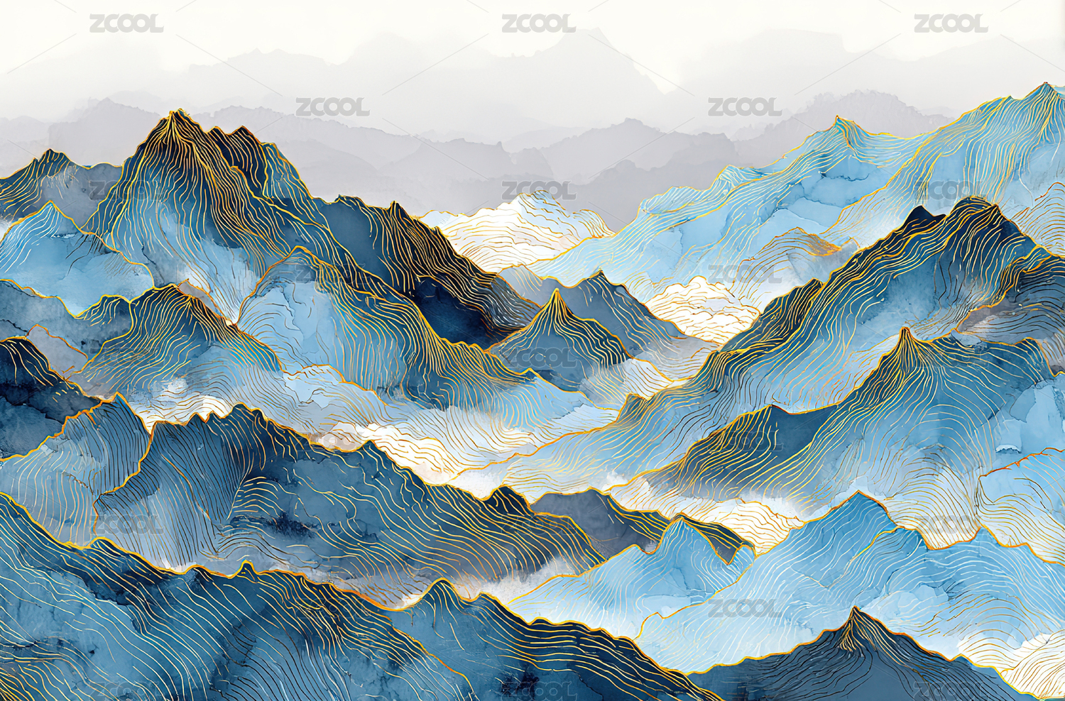 抽象蓝色山脉风景图