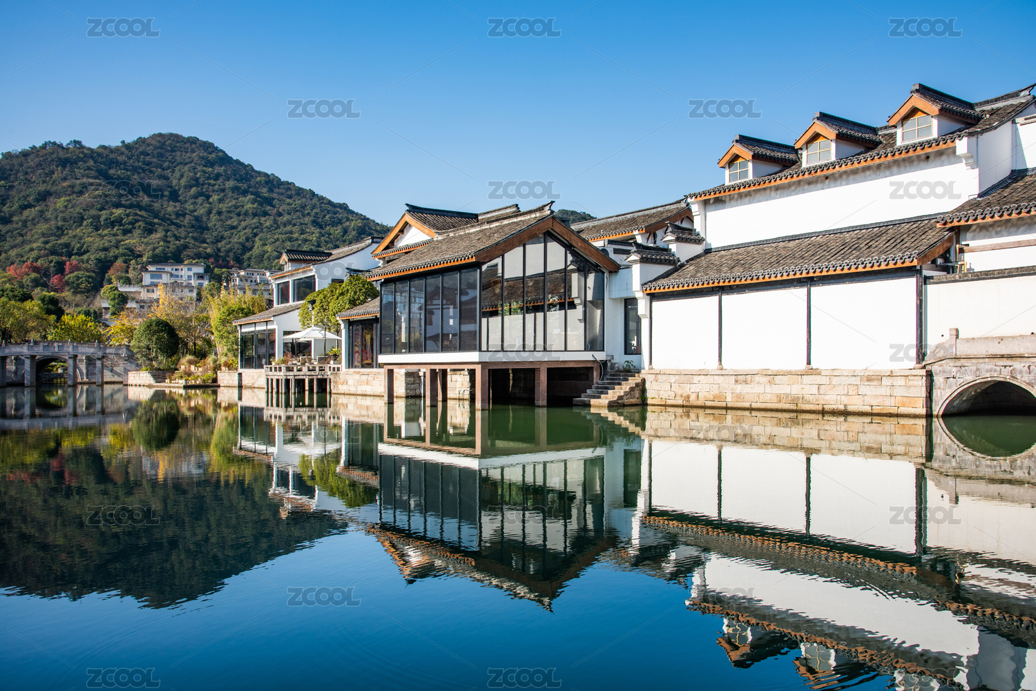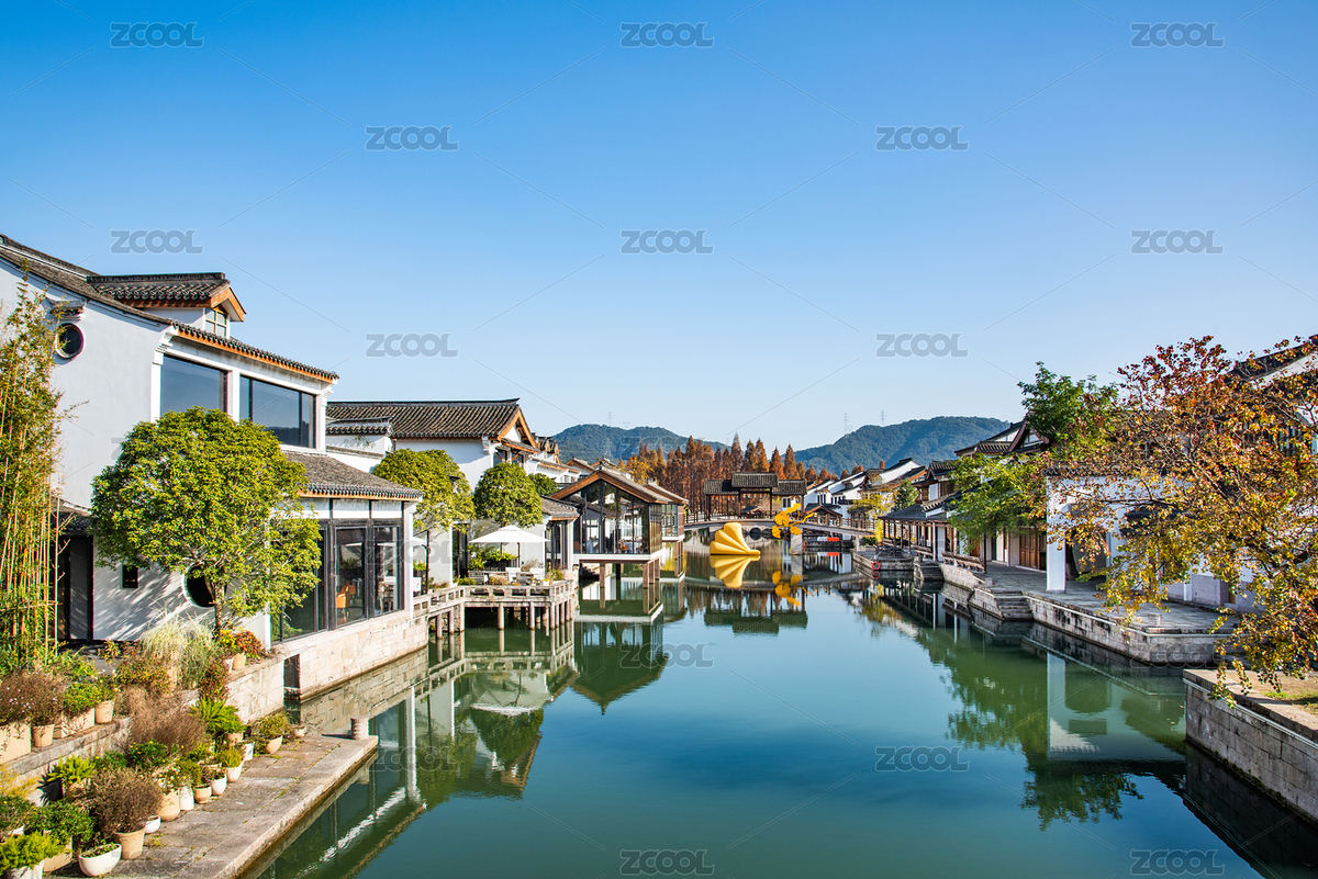 中国浙江萧山湘湖水街新中式江南风格建筑