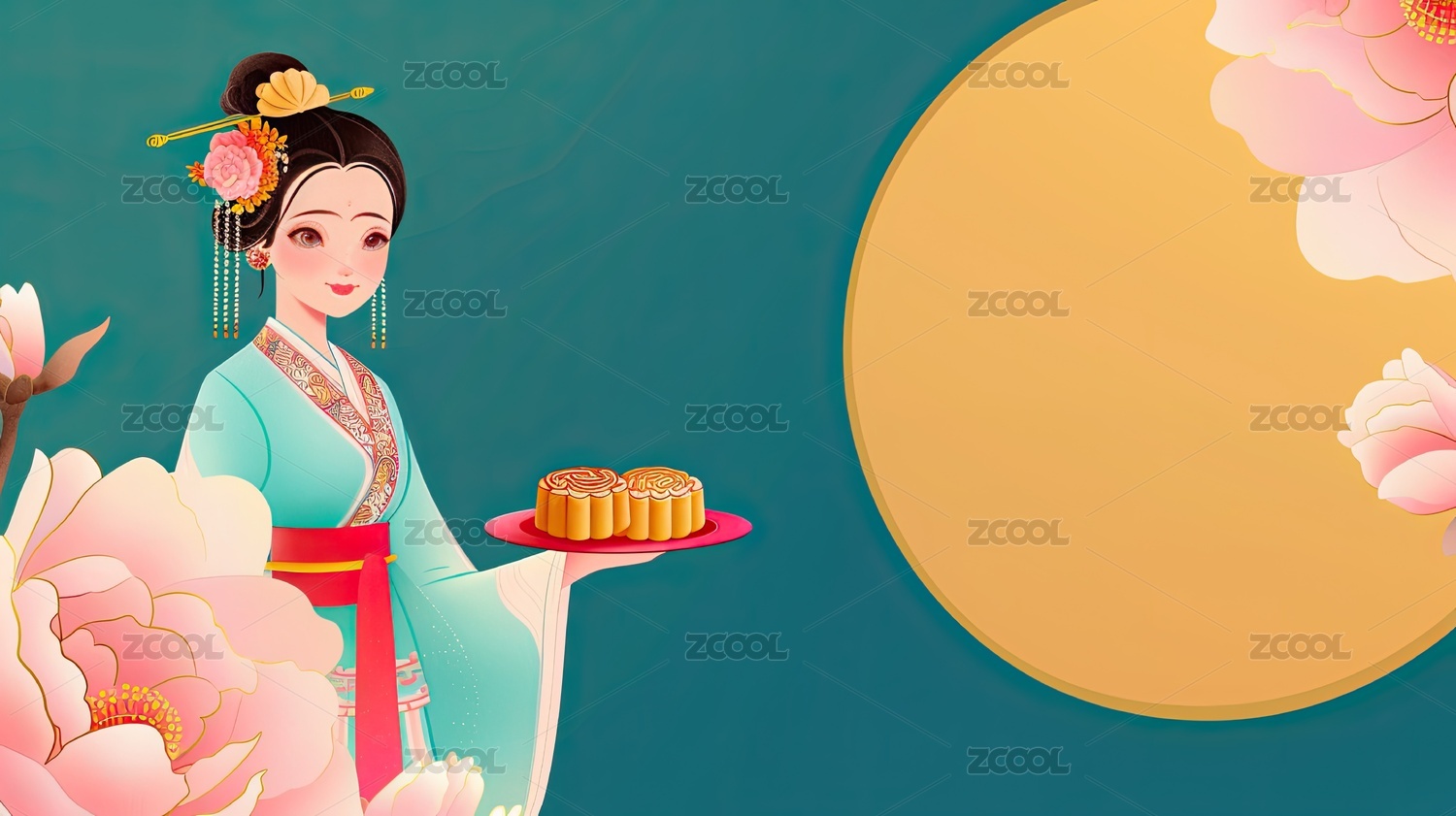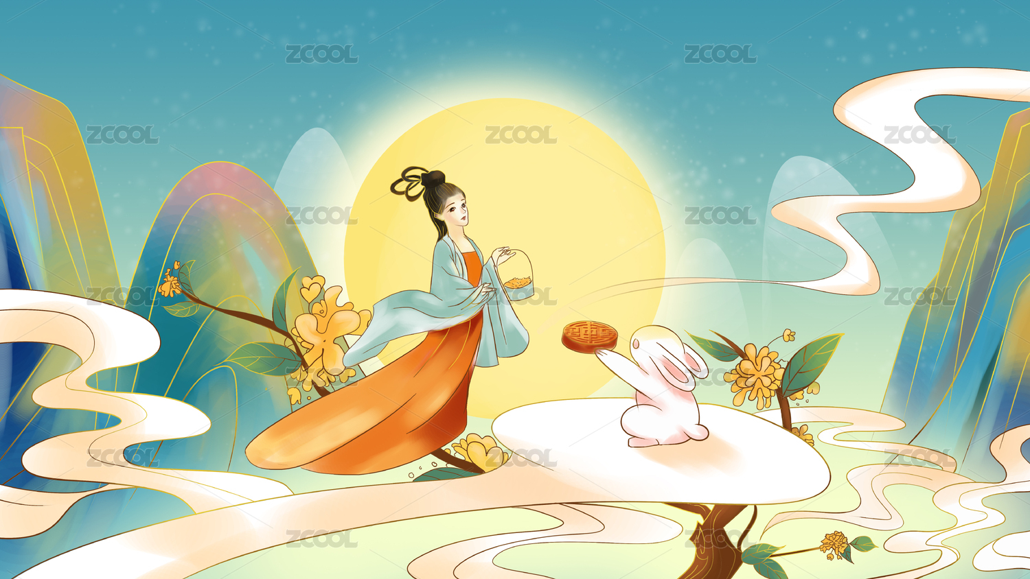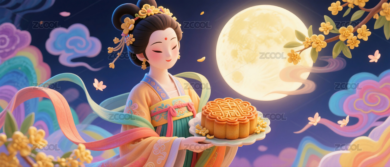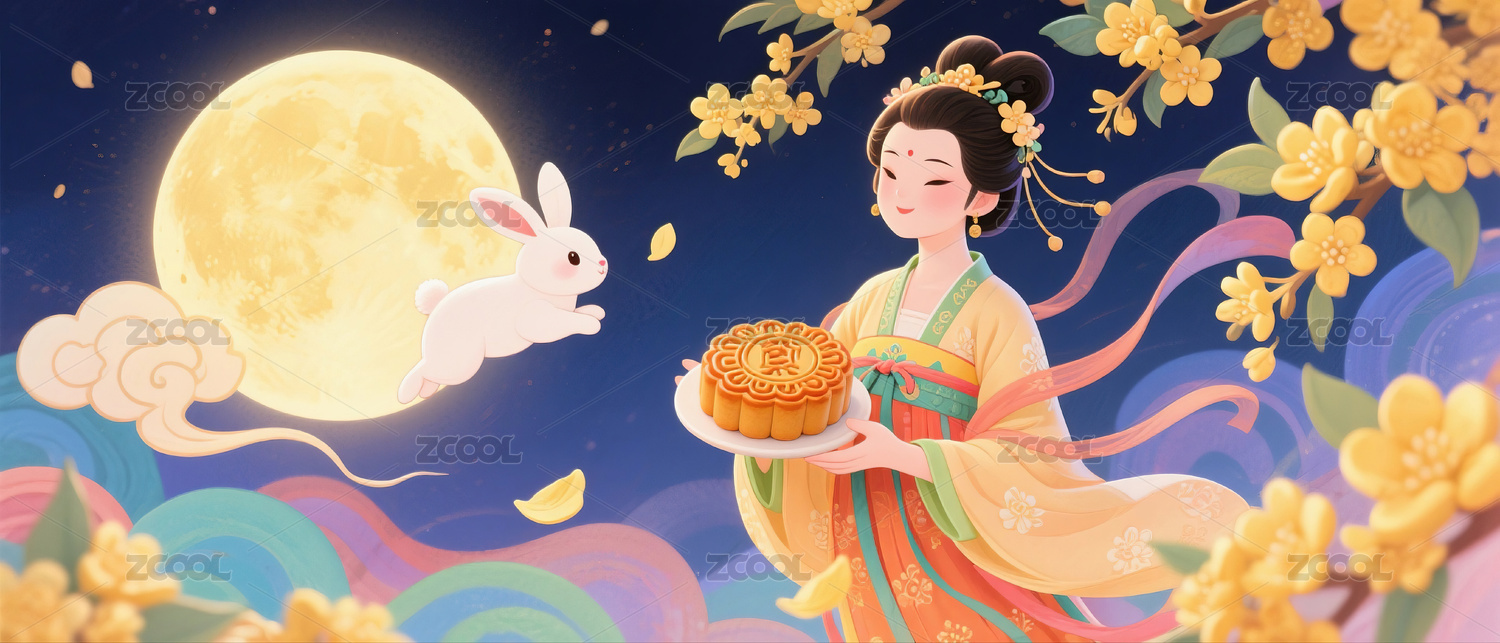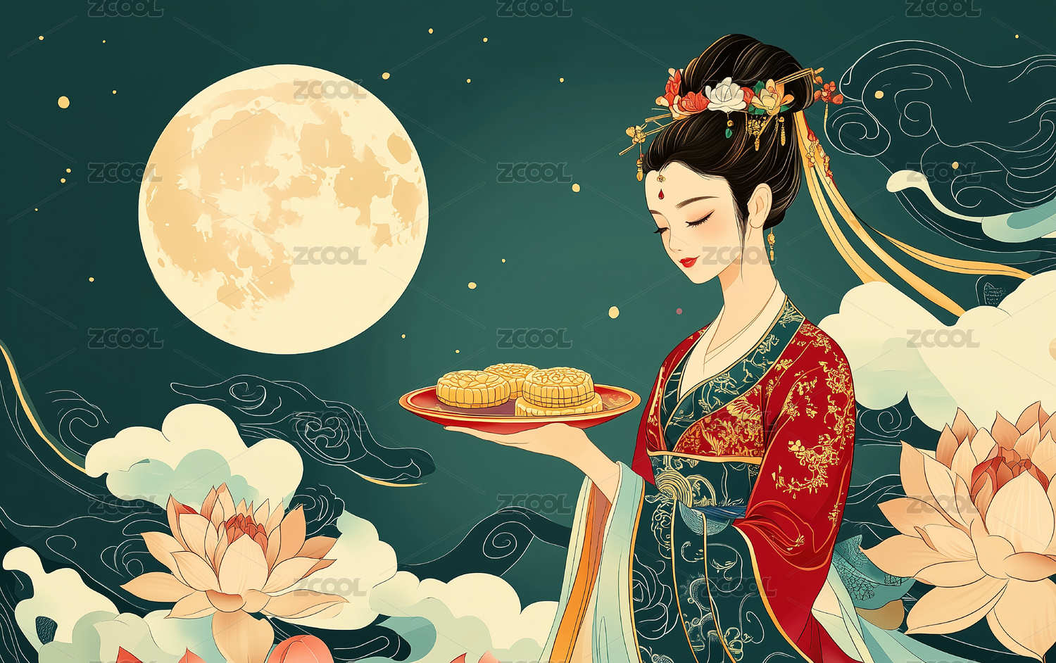 花好月圆夜嫦娥仙女手拿月饼赏中秋