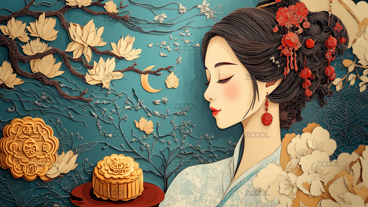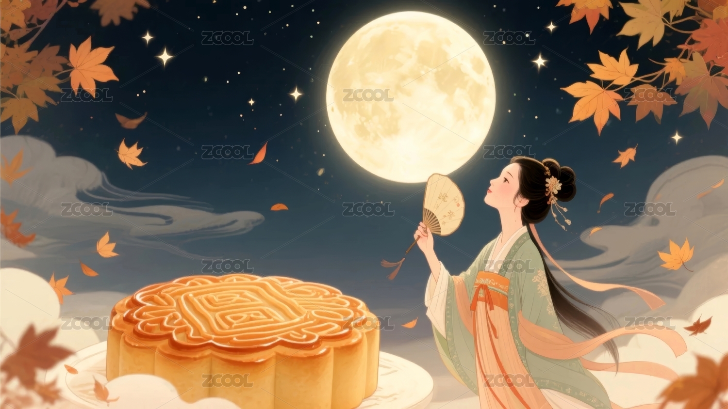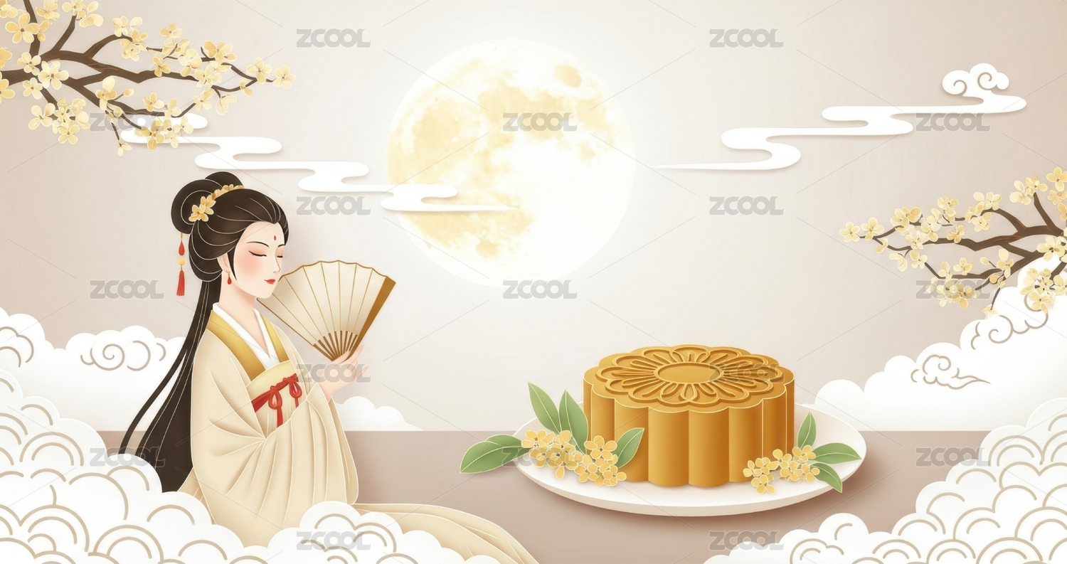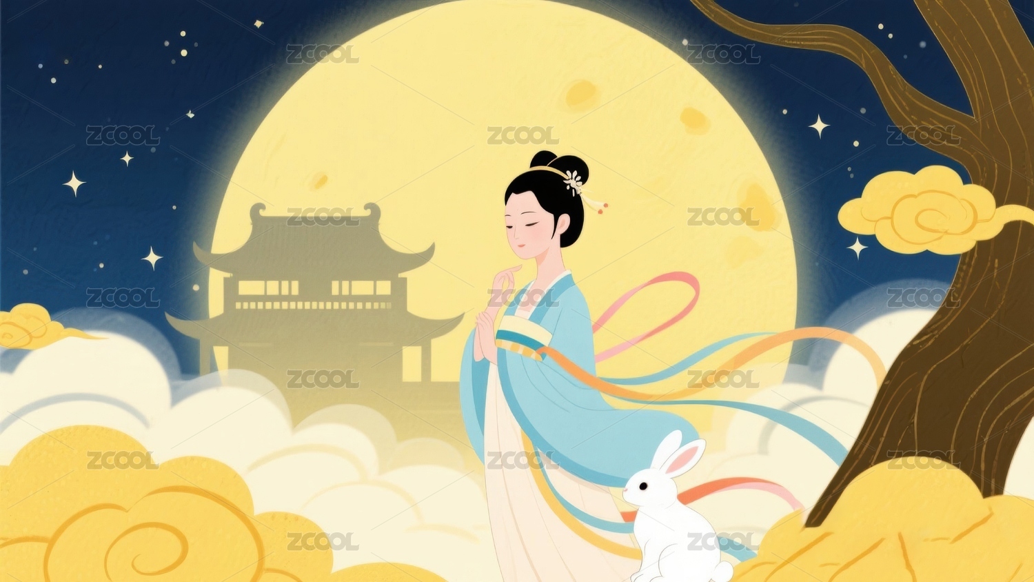 花好月圆夜嫦娥仙女手拿月饼赏中秋