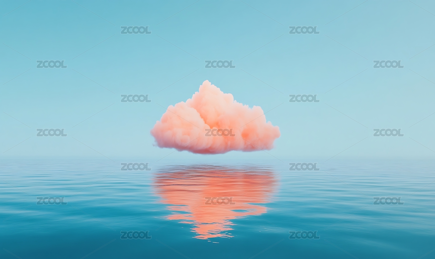 粉色云朵海面倒影唯美梦幻