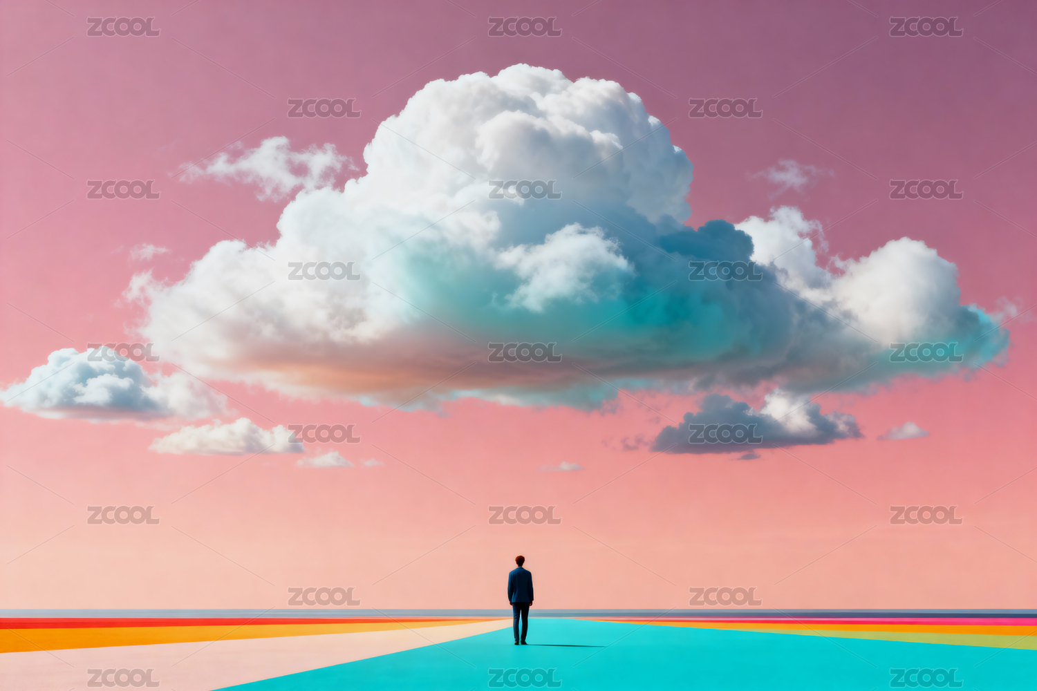 人与彩色云朵 梦幻场景