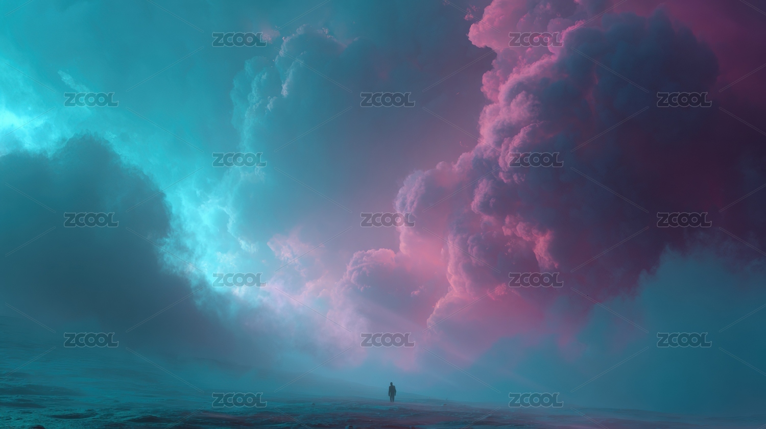 人伫立彩云下 梦幻场景