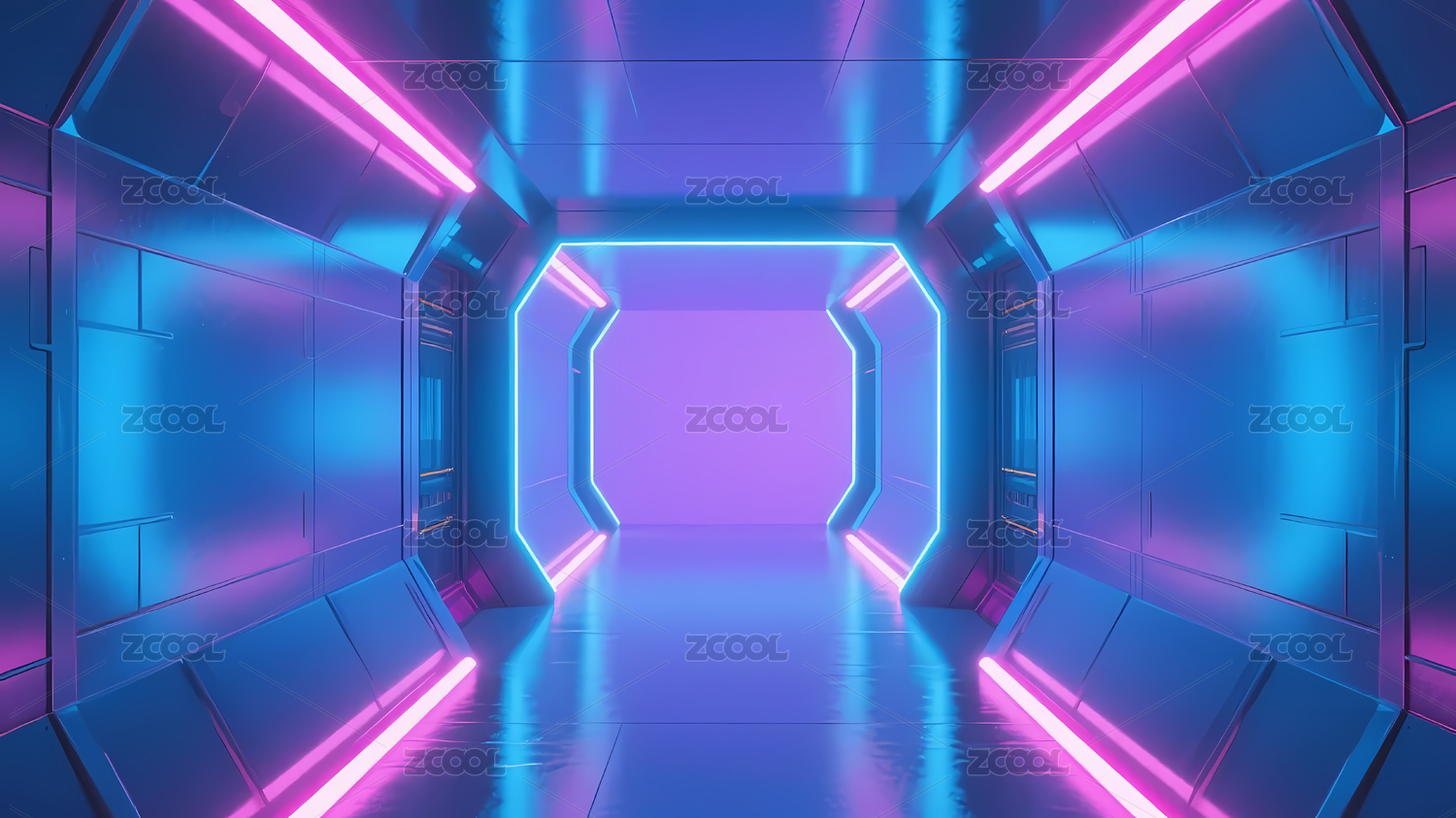 赛博朋克建筑室内空间发光未来科技科幻虚构
