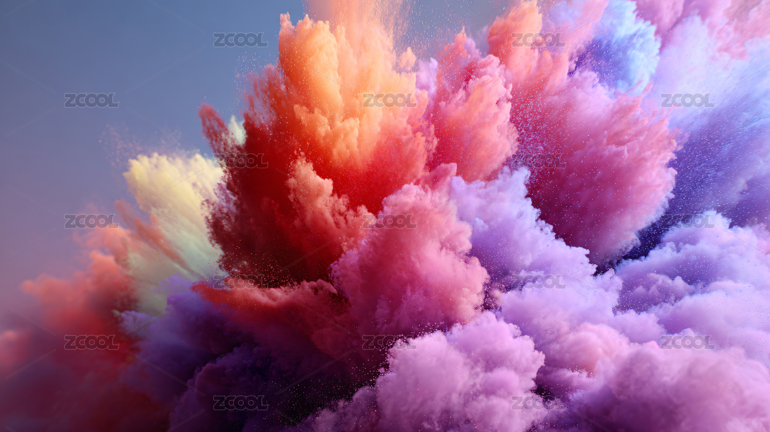 抽象彩色粉尘在纯色背景下爆炸粉尘喷溅背景