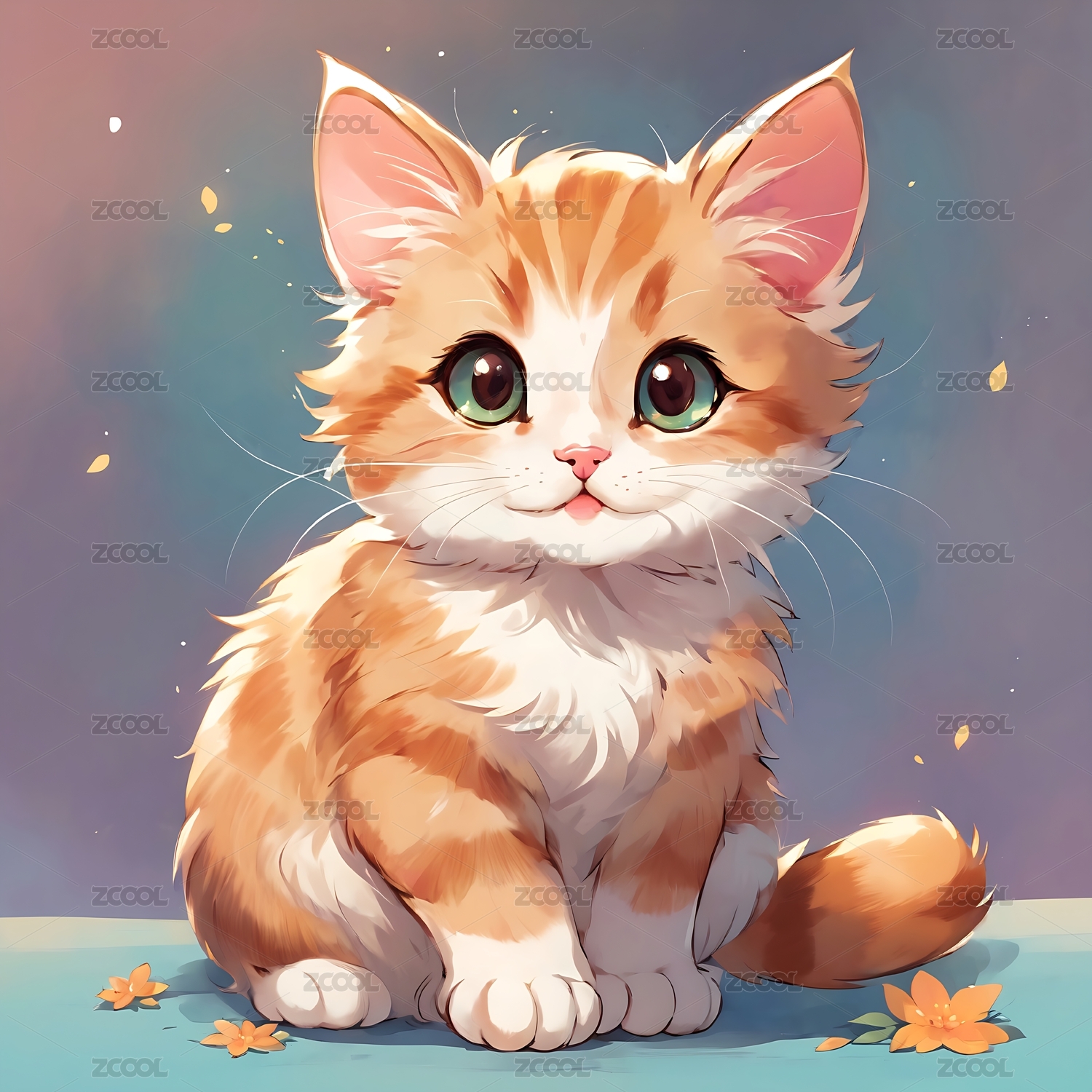 橙白相间可爱猫咪坐姿画像