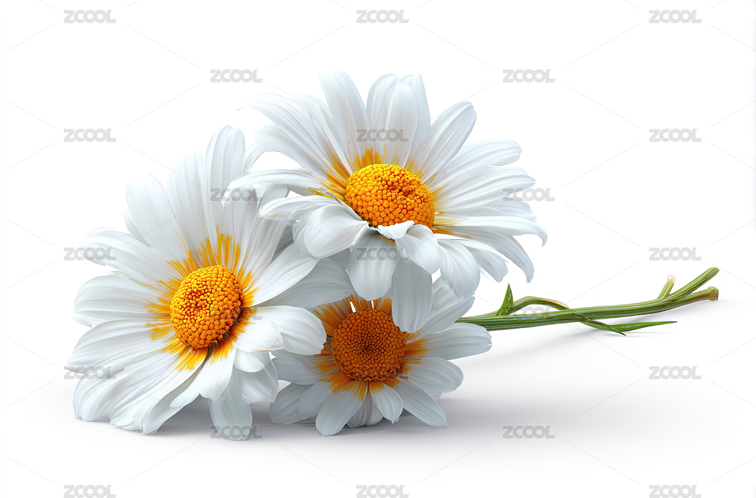 三朵白瓣黄蕊的清新雏菊