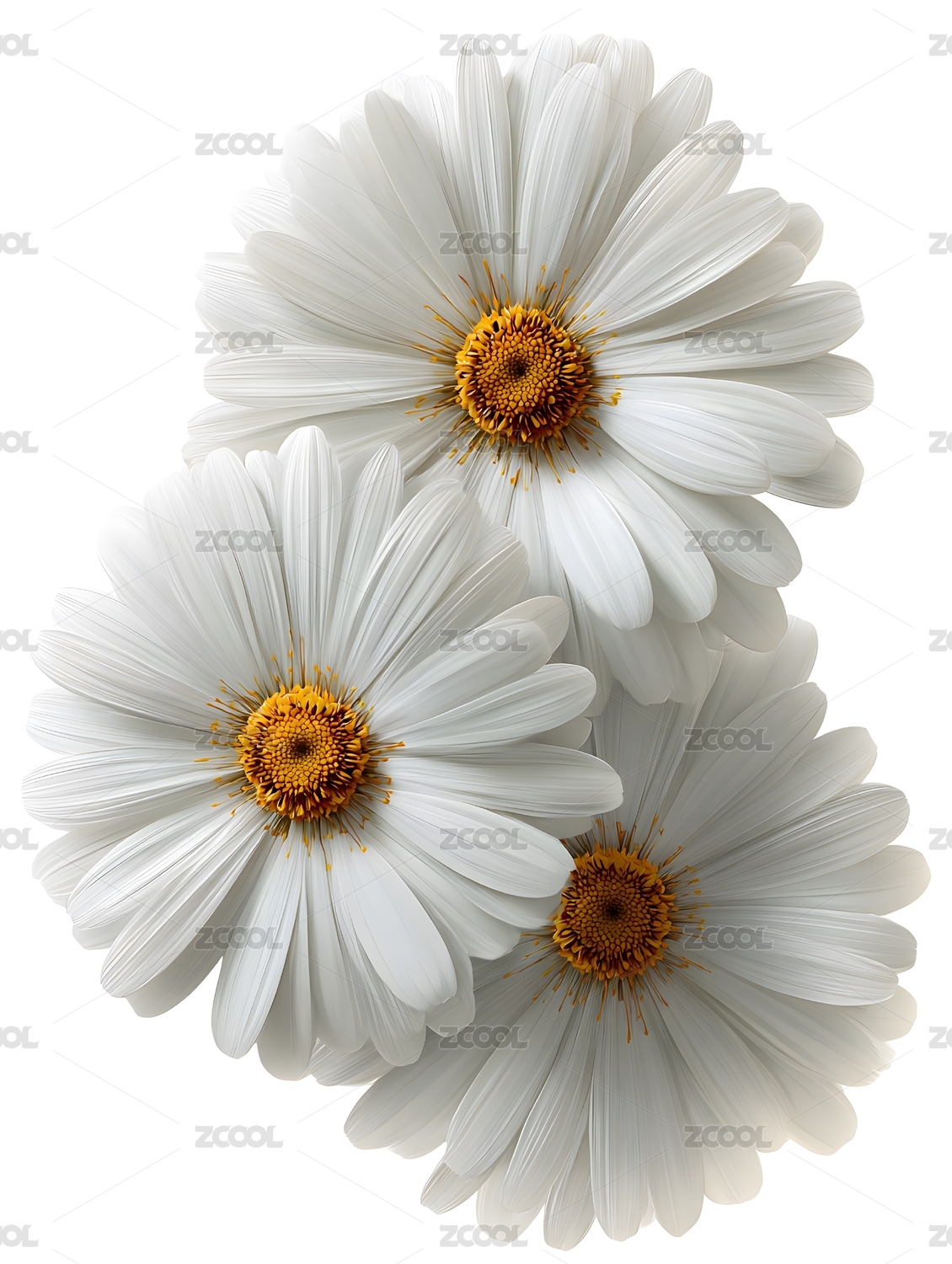 三朵白色雏菊花绽放