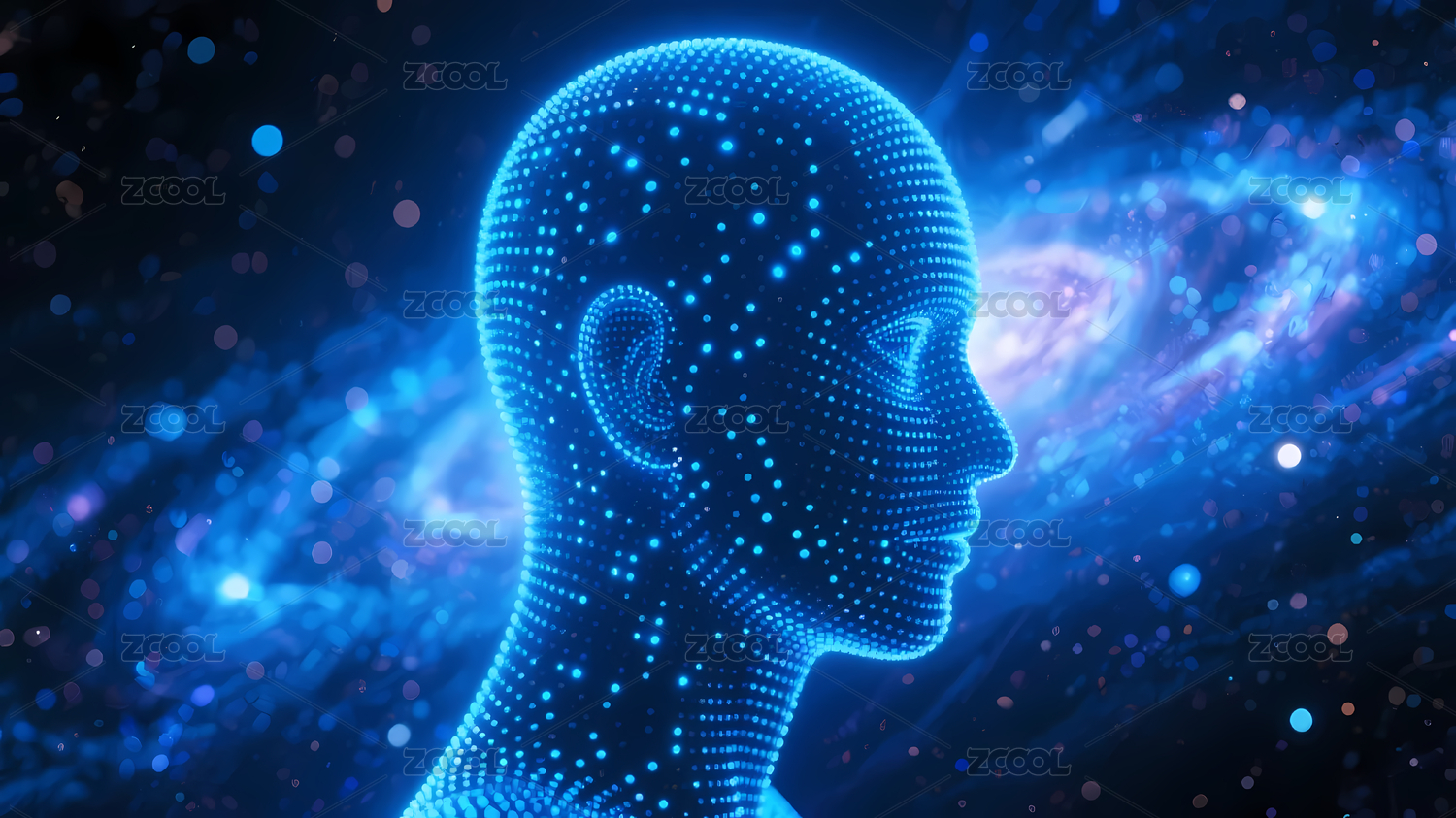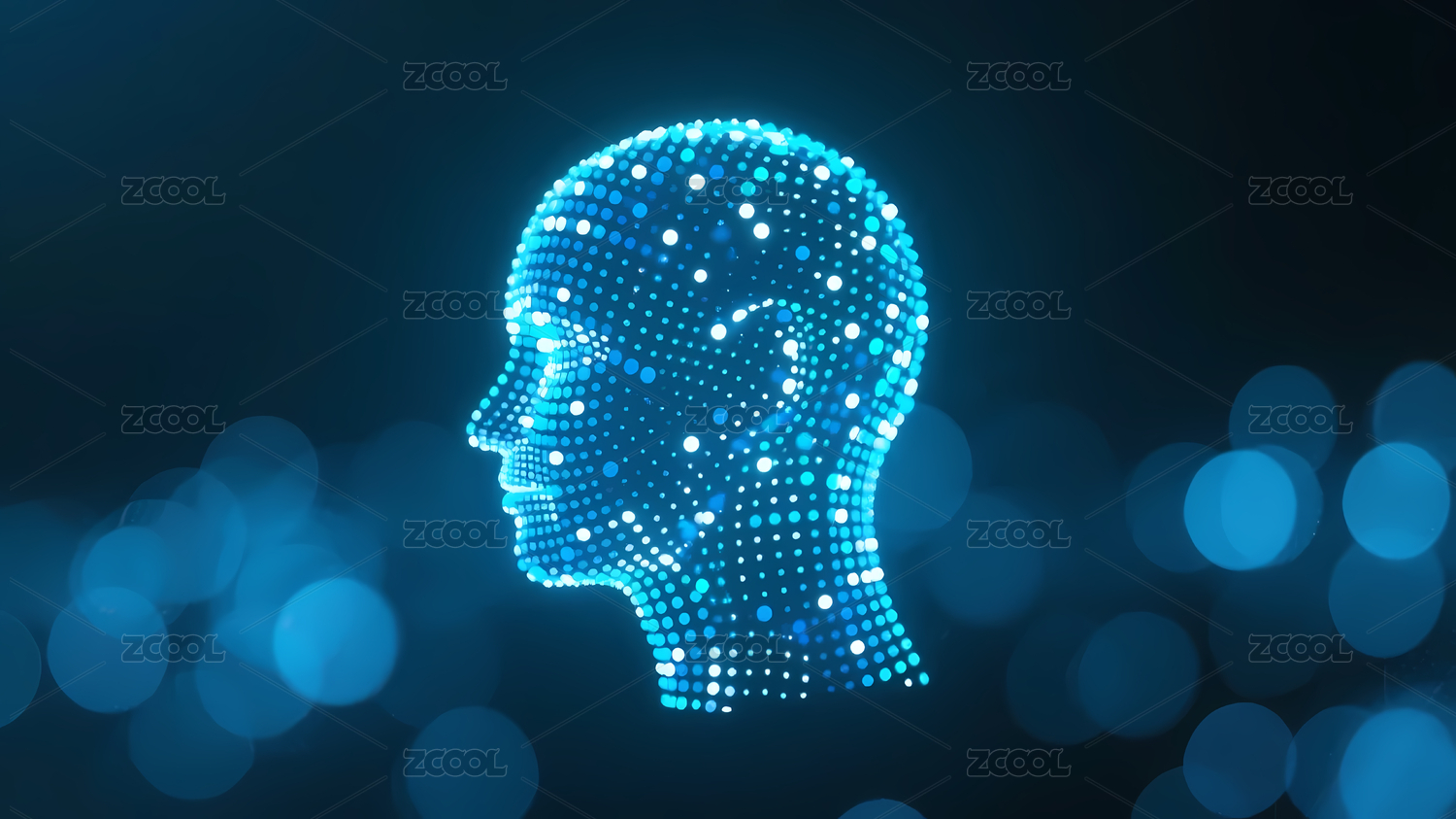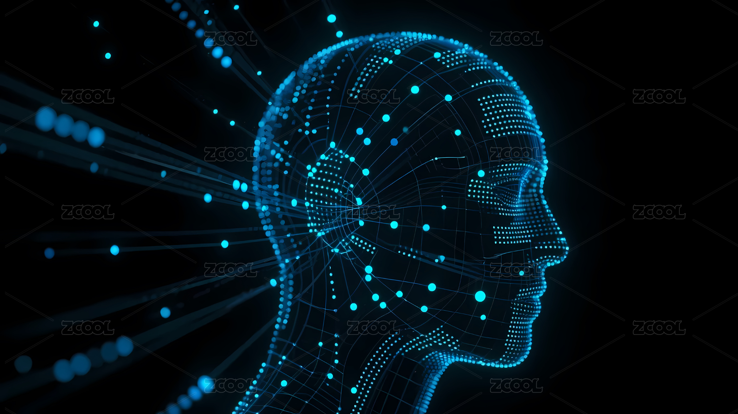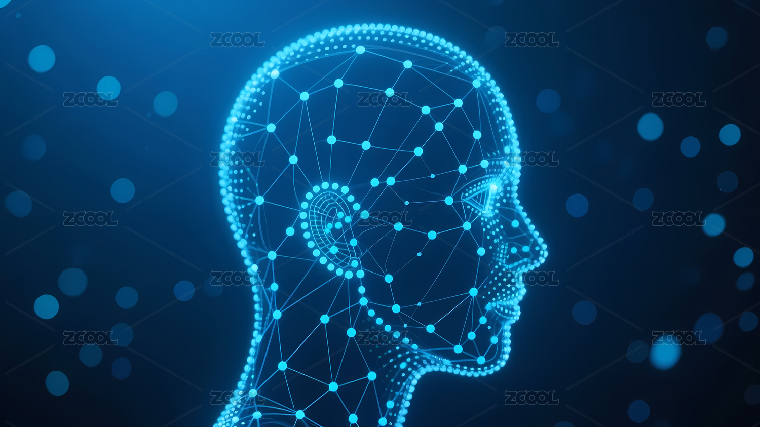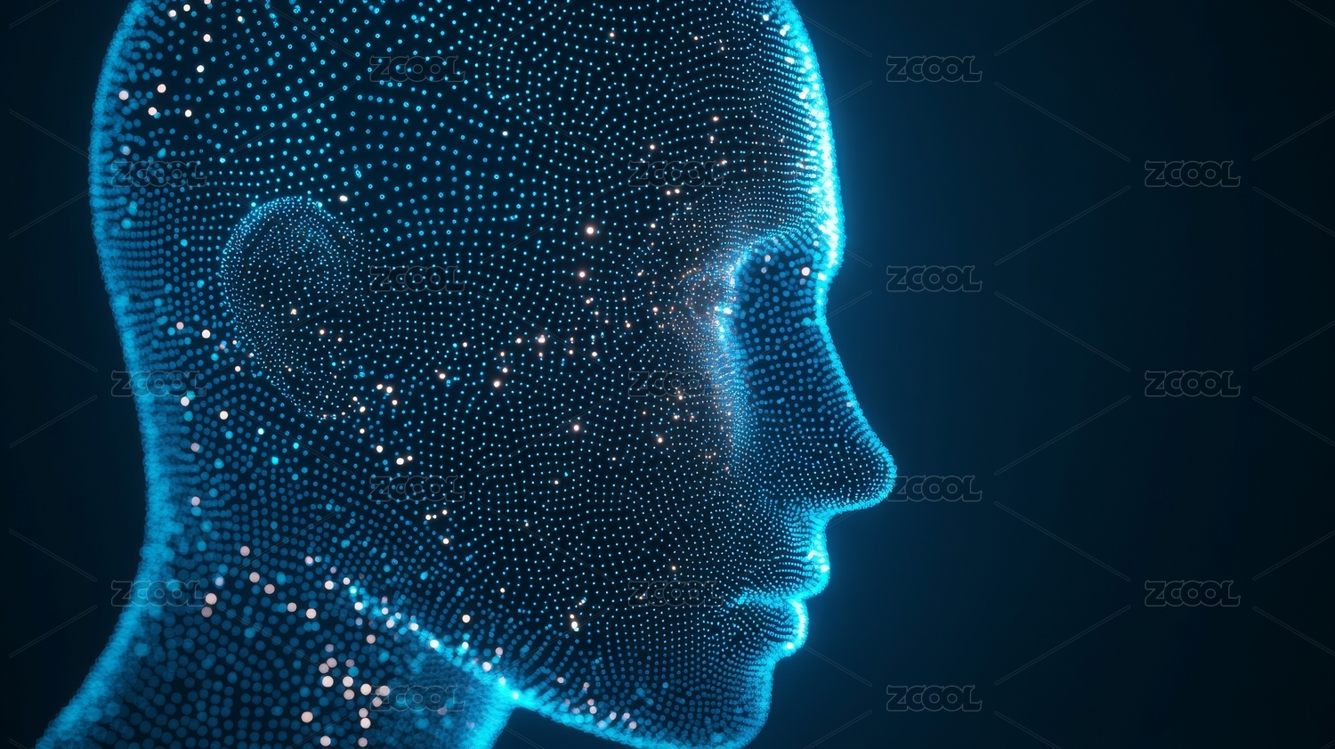 科技,未来,蓝色,头部,侧面,轮廓,网格,点阵,数字化,设计