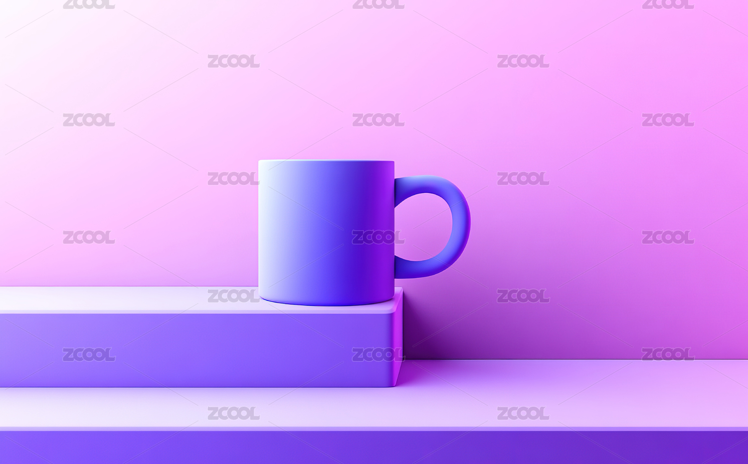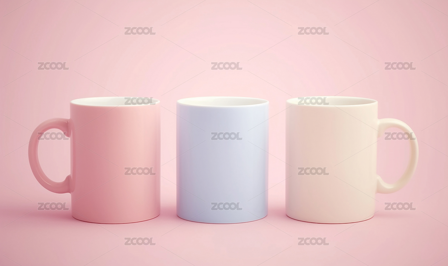 两个色彩缤纷咖啡杯并排放在桌子上图片