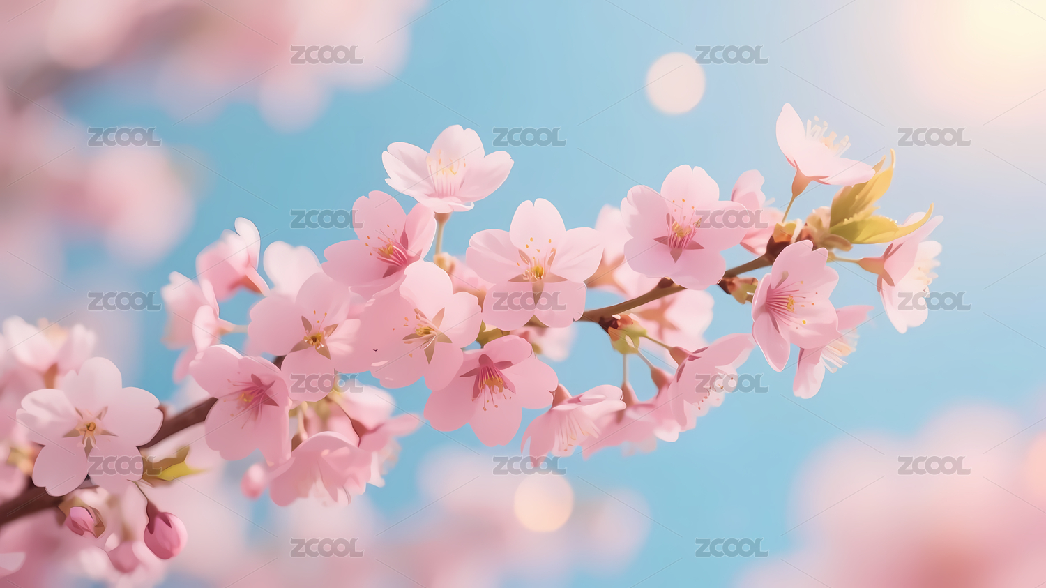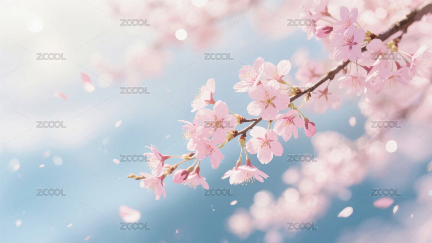 自然,清新,蓝色,明亮,樱花,花瓣,宁静,浪漫,光斑,天空