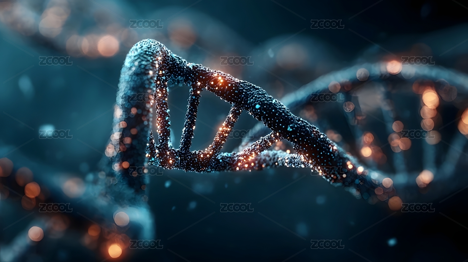 蓝色DAN螺旋分子结构发着橙色的光背景