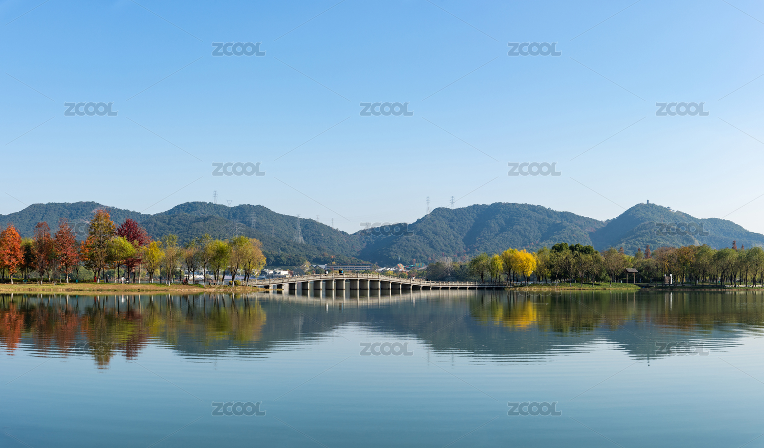 浙江杭州萧山湘湖国家旅游度假区政和桥秋景