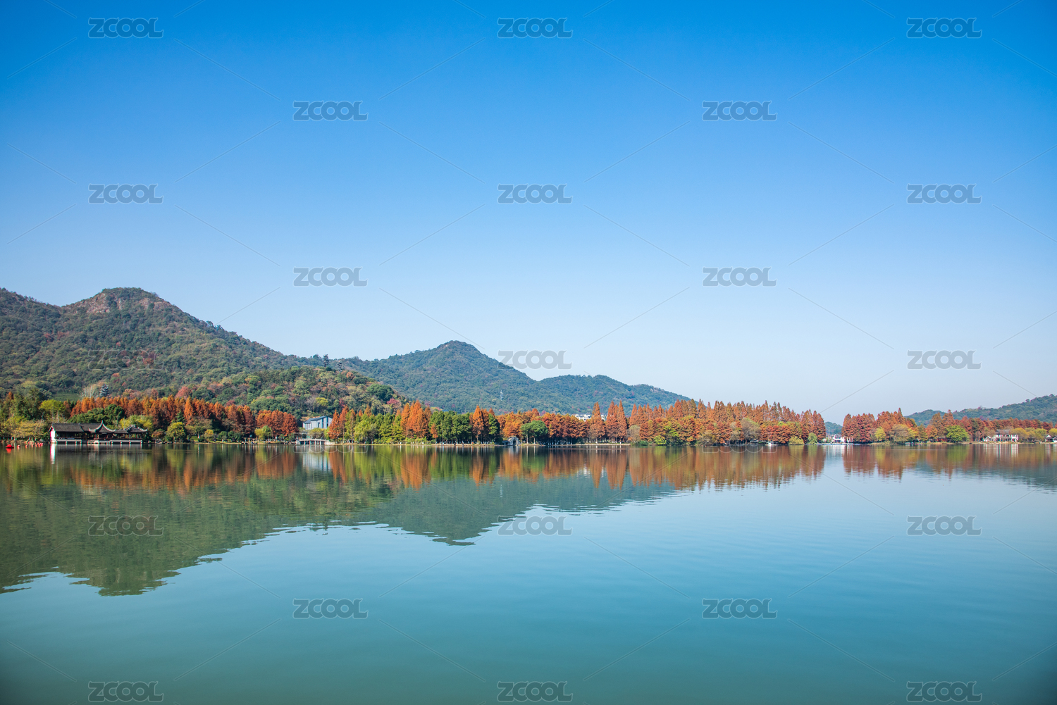 中国浙江杭州西湖景区,五彩缤纷的山水风光秋景