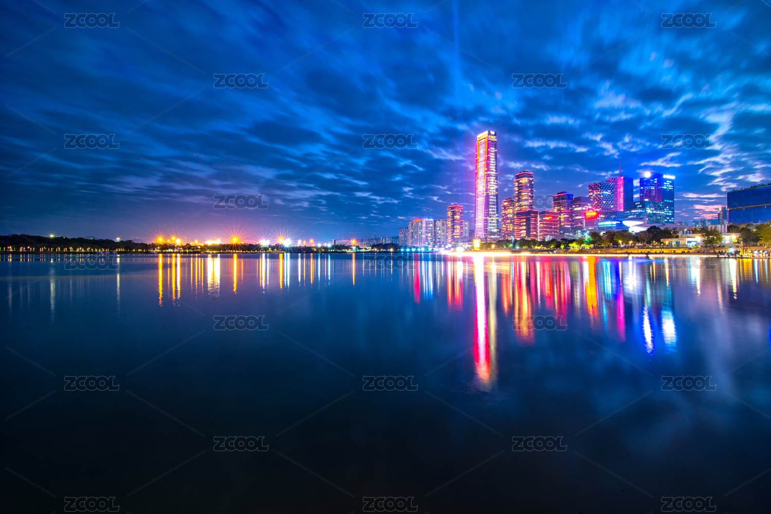 苏州金鸡湖湖东现代滨水城市夜景风光
