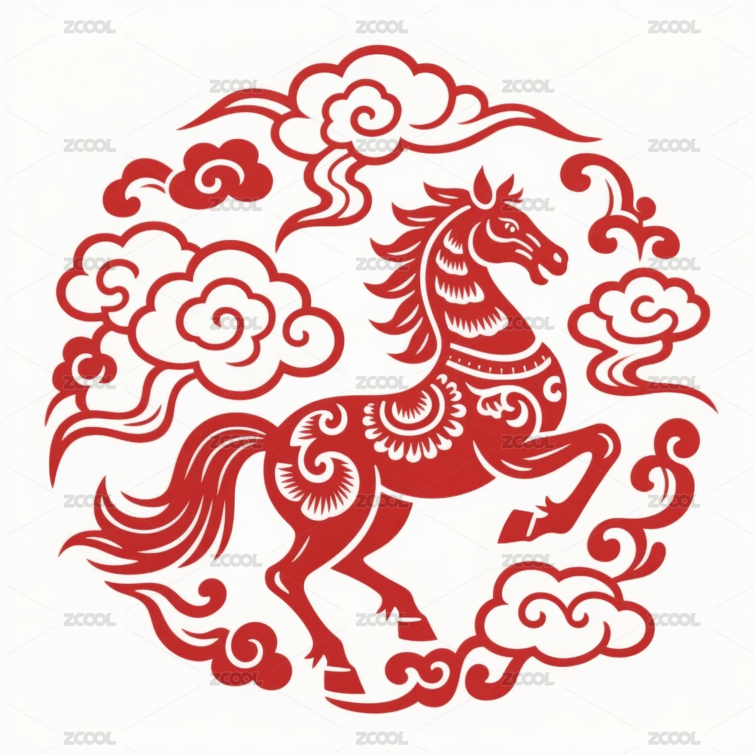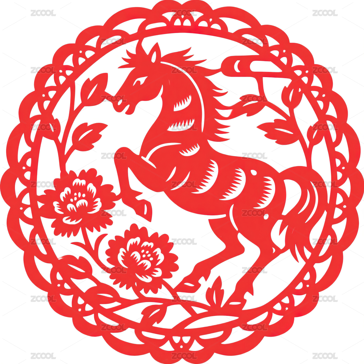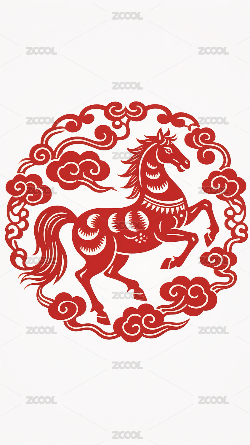 jimeng-2025-08-21-8923-纹样设计,中国传统剪纸,駿馬,高饱和度,高细节,高级感,精美,白色背