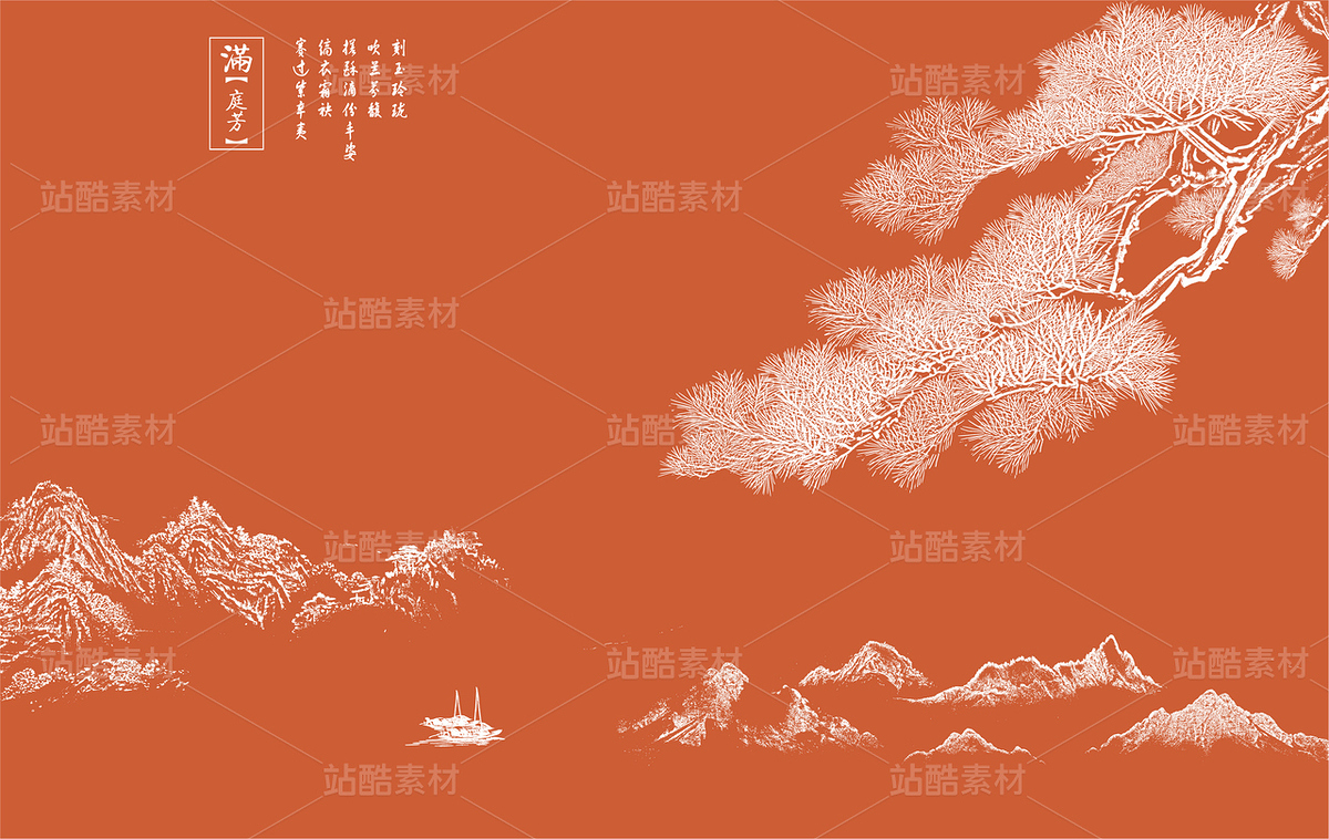 新款高清橘黄楼阁新中式山水工装背景墙03