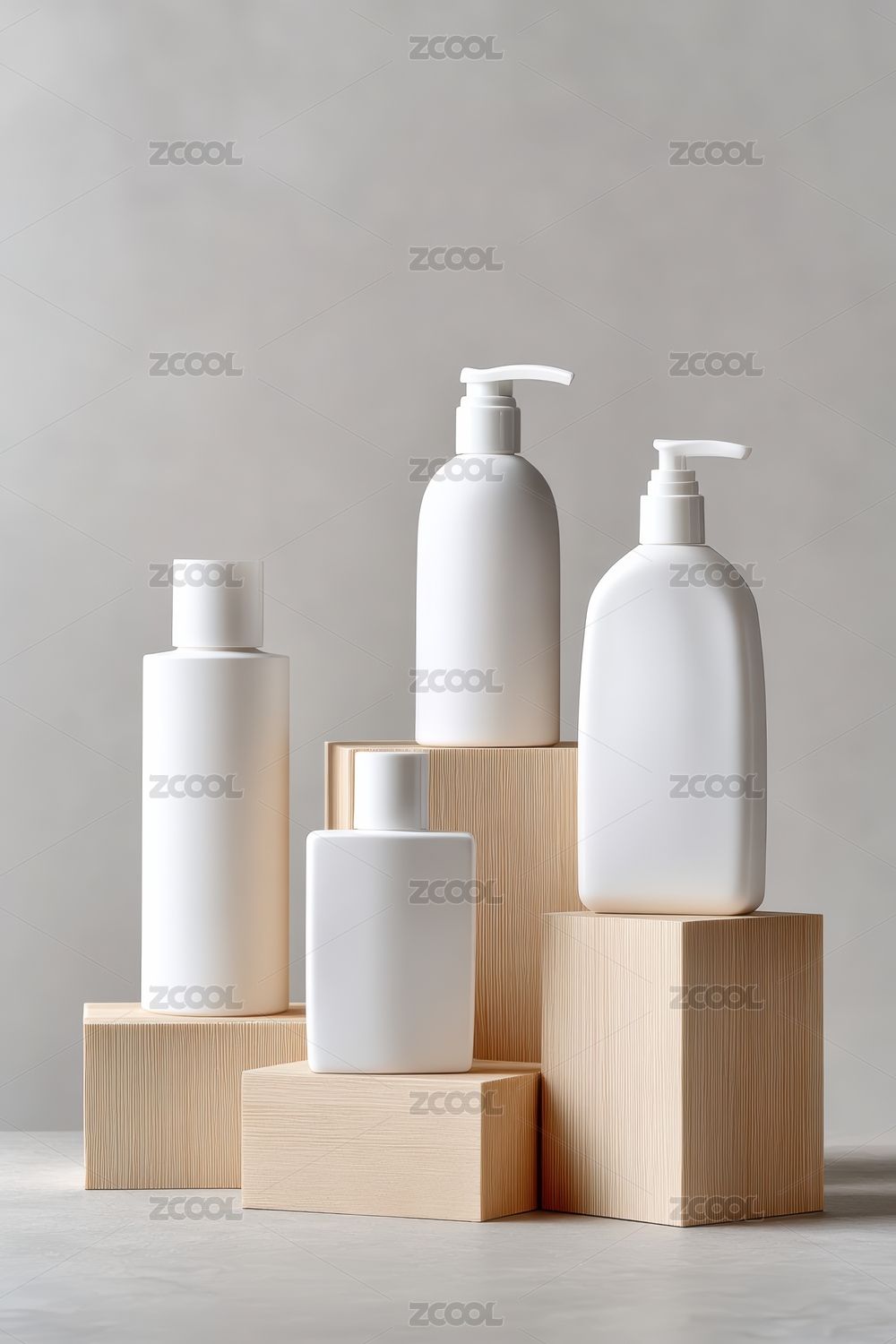 简约风格的白色瓶子与木质底座