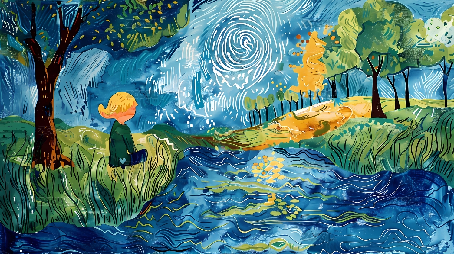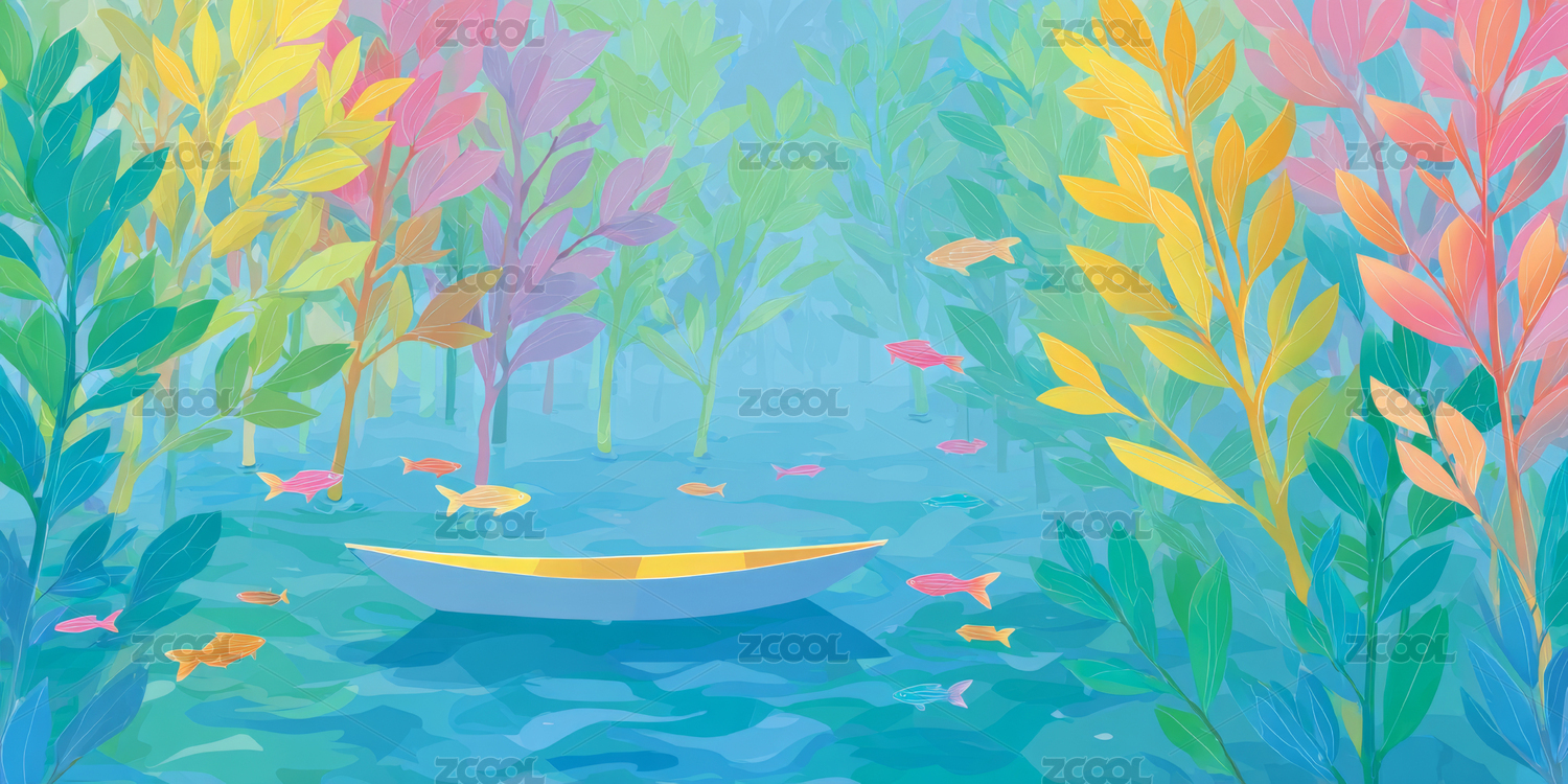 湖面,小船,倒影,树木,色彩,油画,艺术,平静,宁静,湖泊