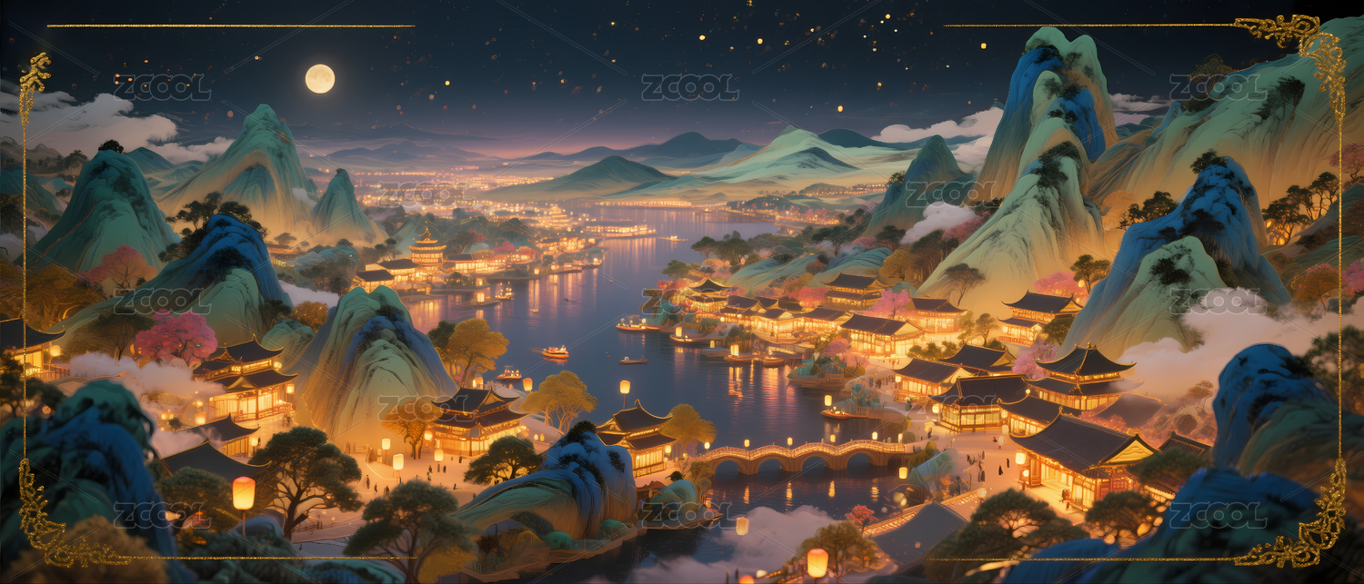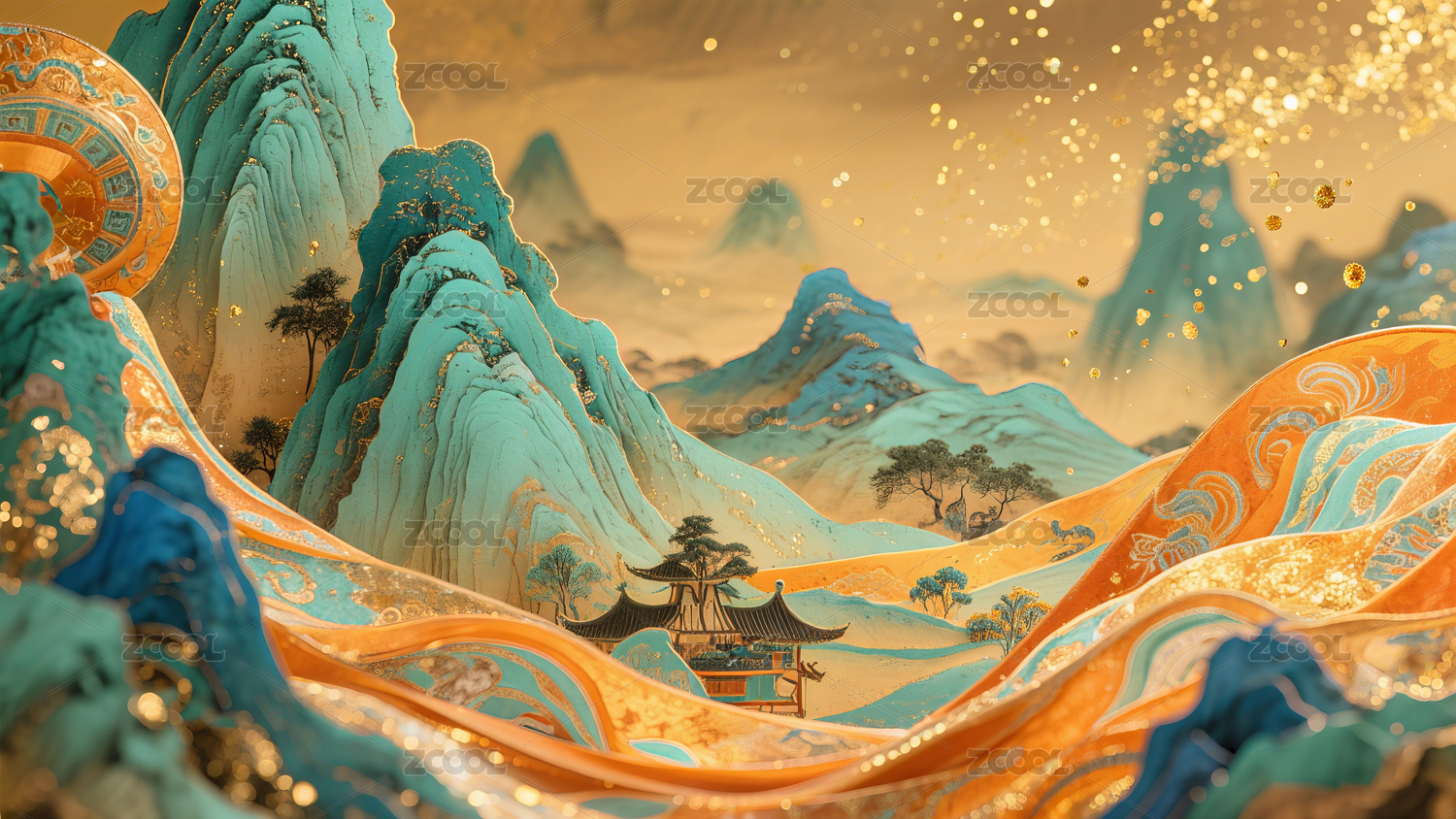 国风,玻璃,立体,山峰,纸雕,抽象,山水画