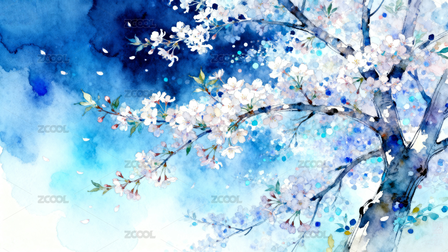 梦幻,晴天,云朵,天空,桃花,水彩画,艺术,背景