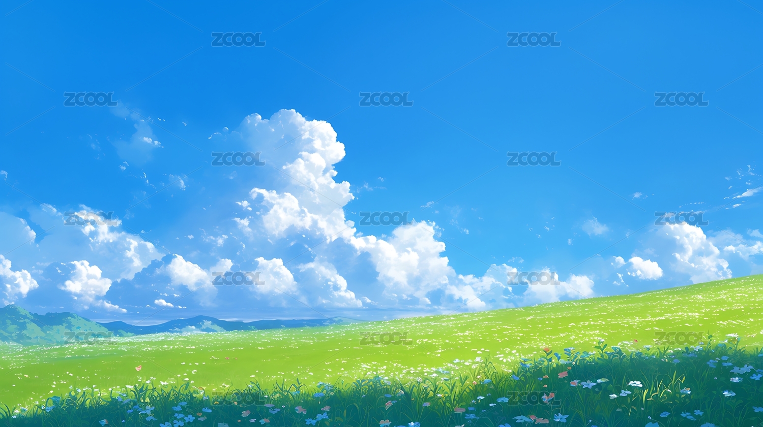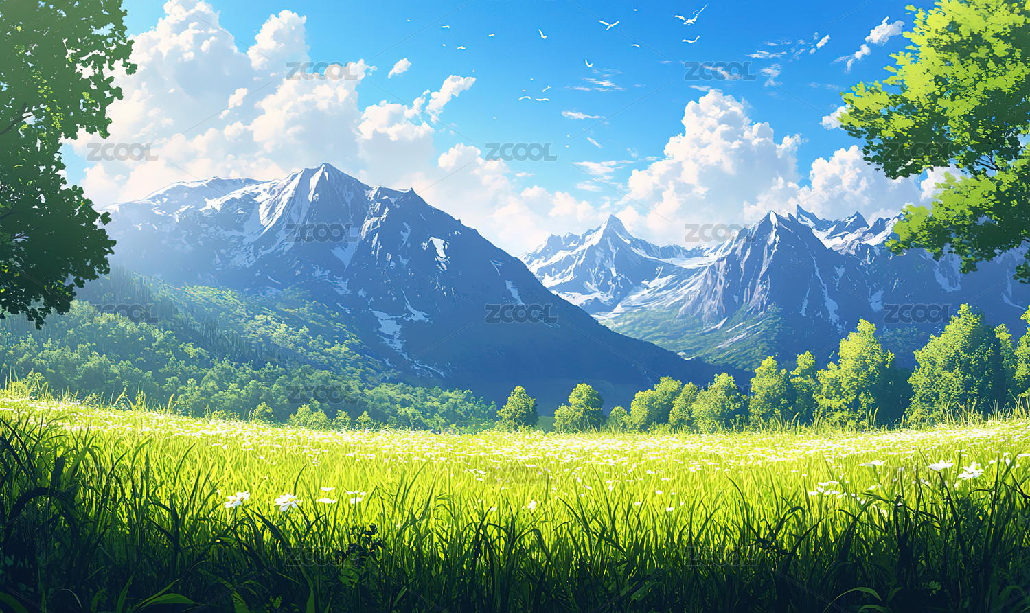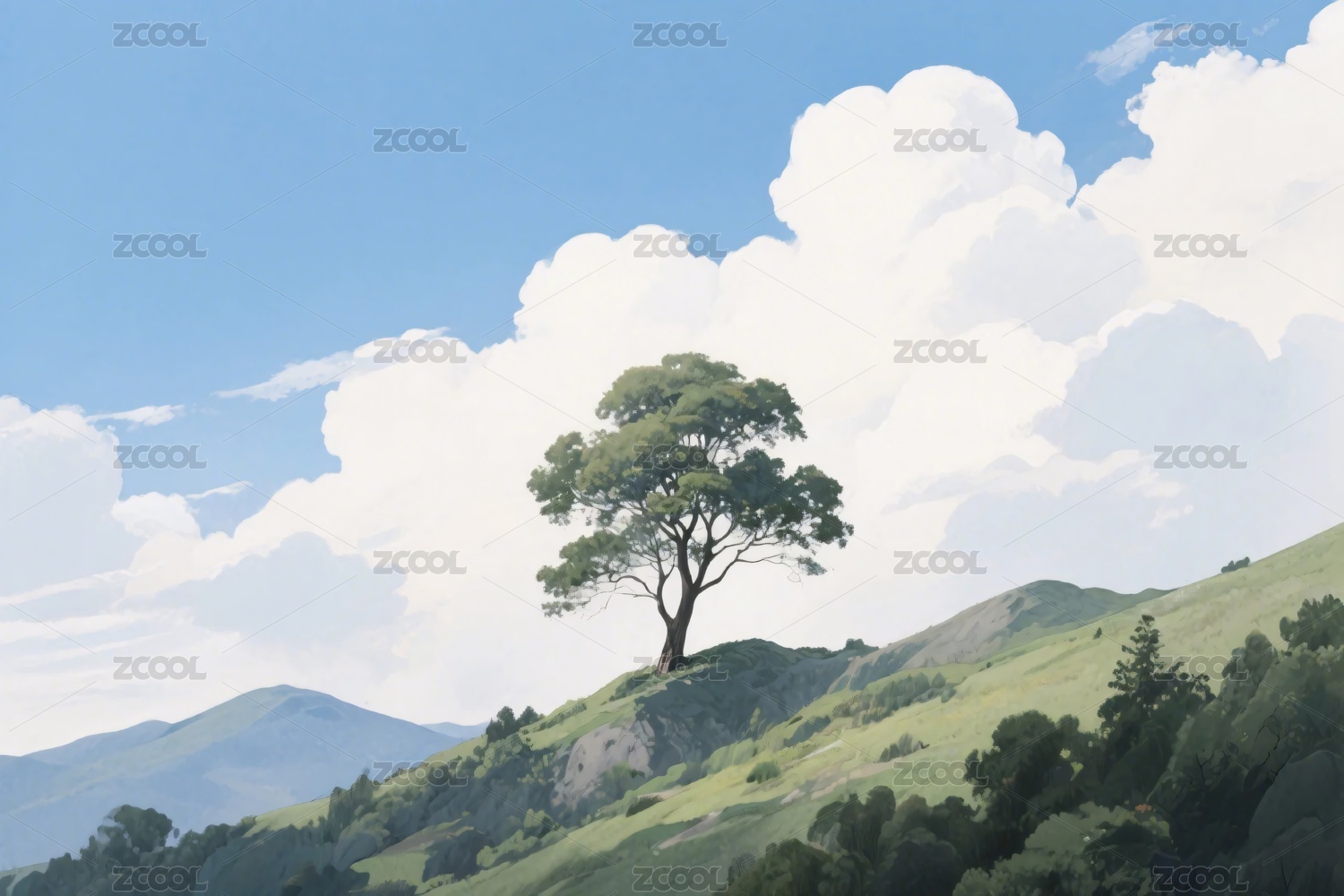 风景,自然,山水,插画,模板,山峦,绿树,白云,蓝天,森林