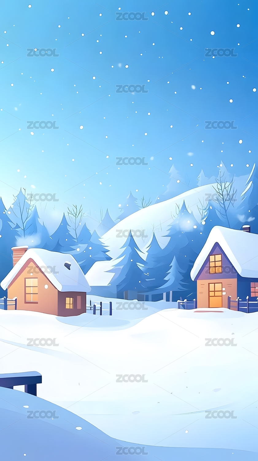 冬日小镇雪景插画