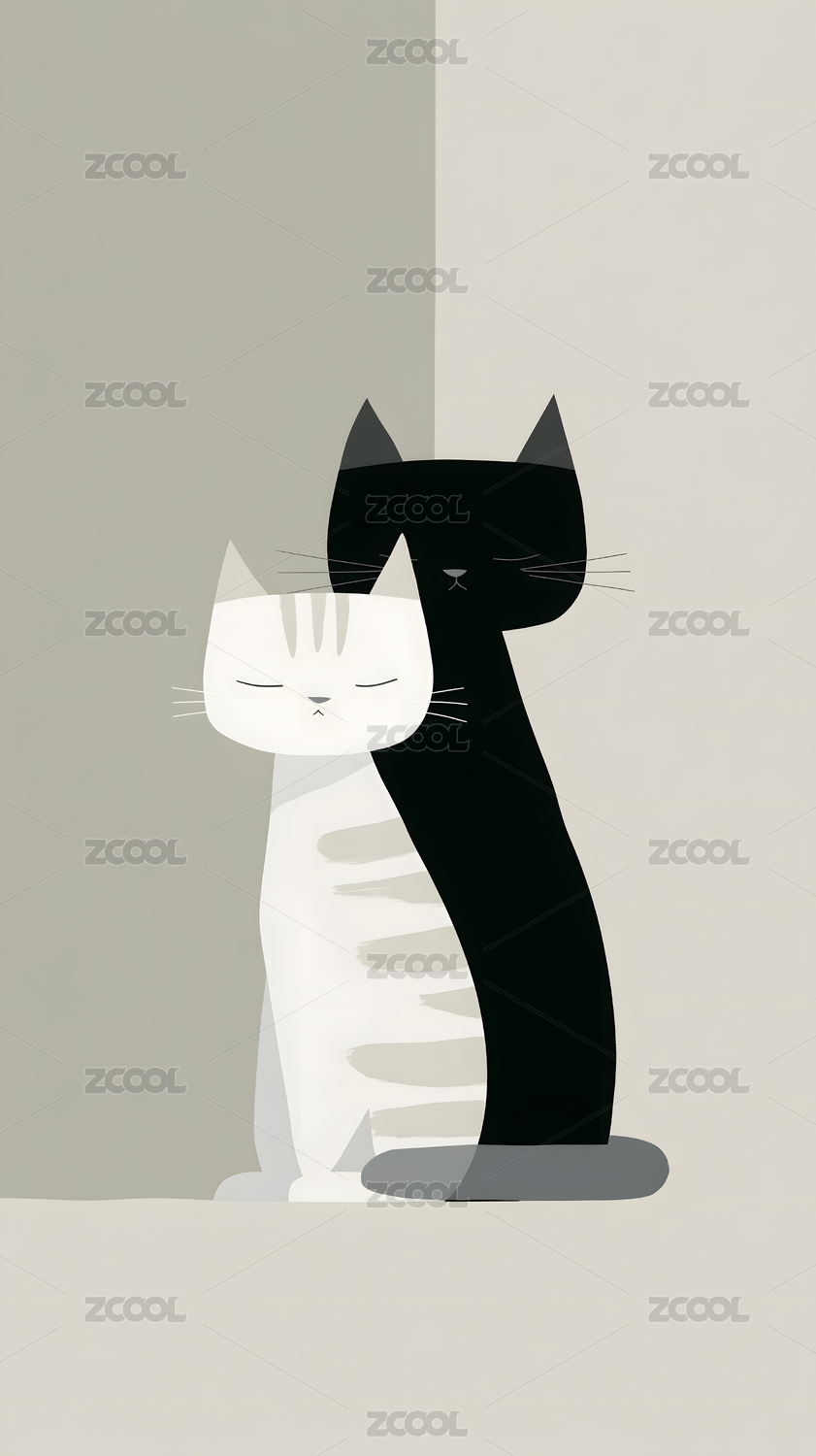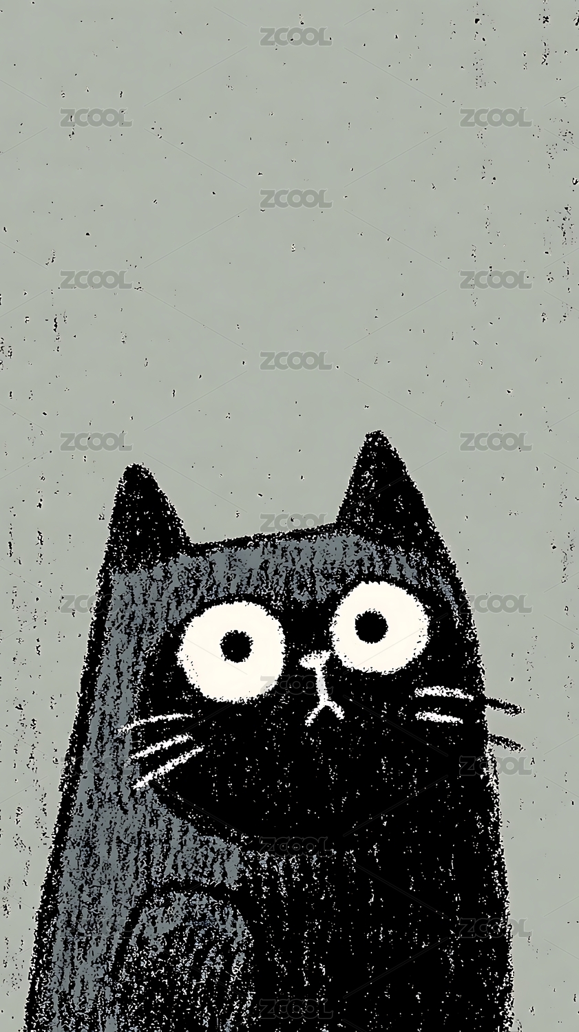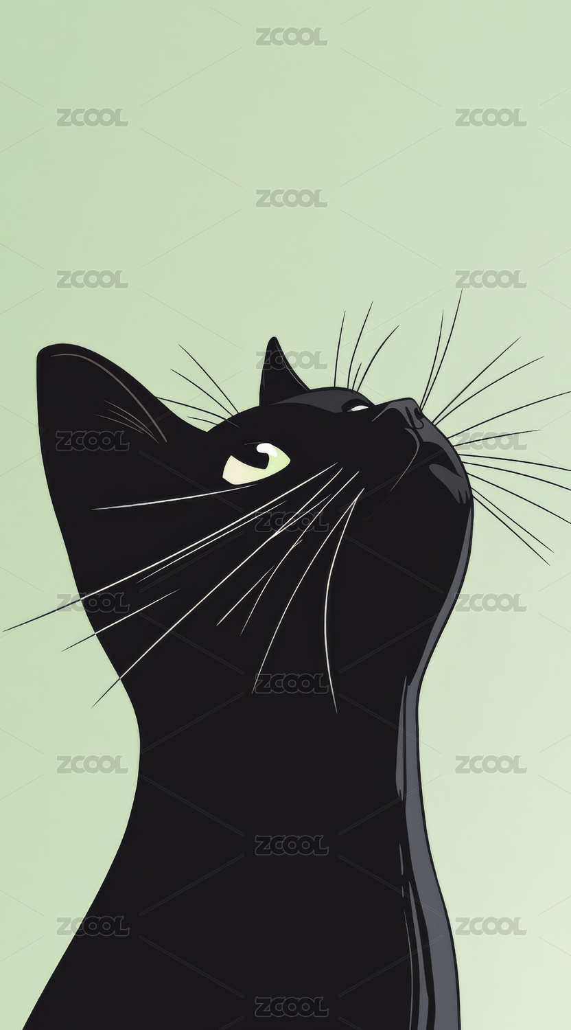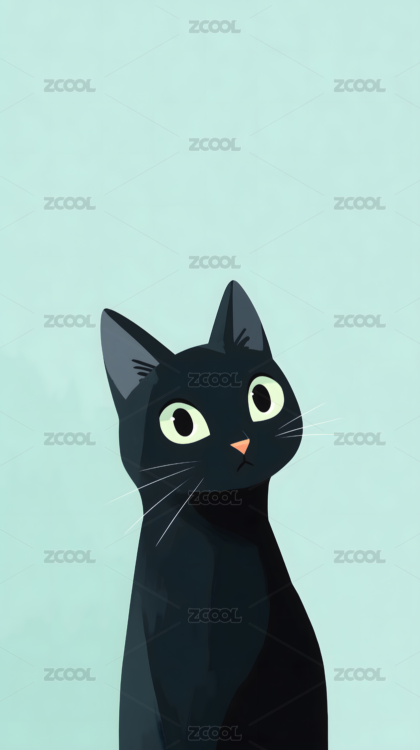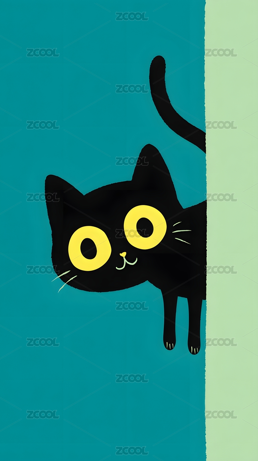 黑猫,猫咪,插画,绿色眼睛,草地,卡通,动物,萌宠,平面,清新