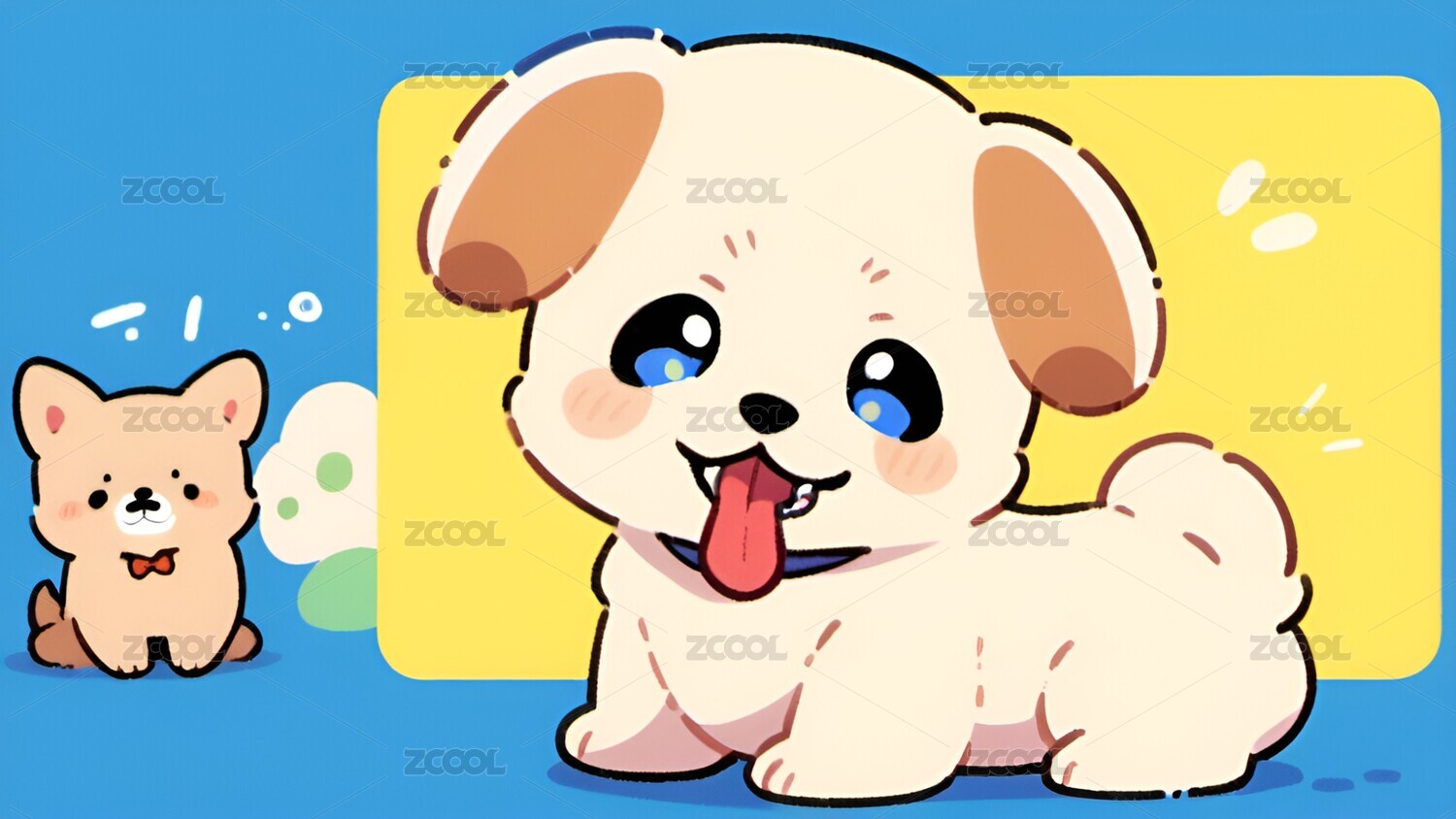 小狗,卡通,插画,动物,笑脸,形象,宠物,蓝色背景,欢乐,拟人