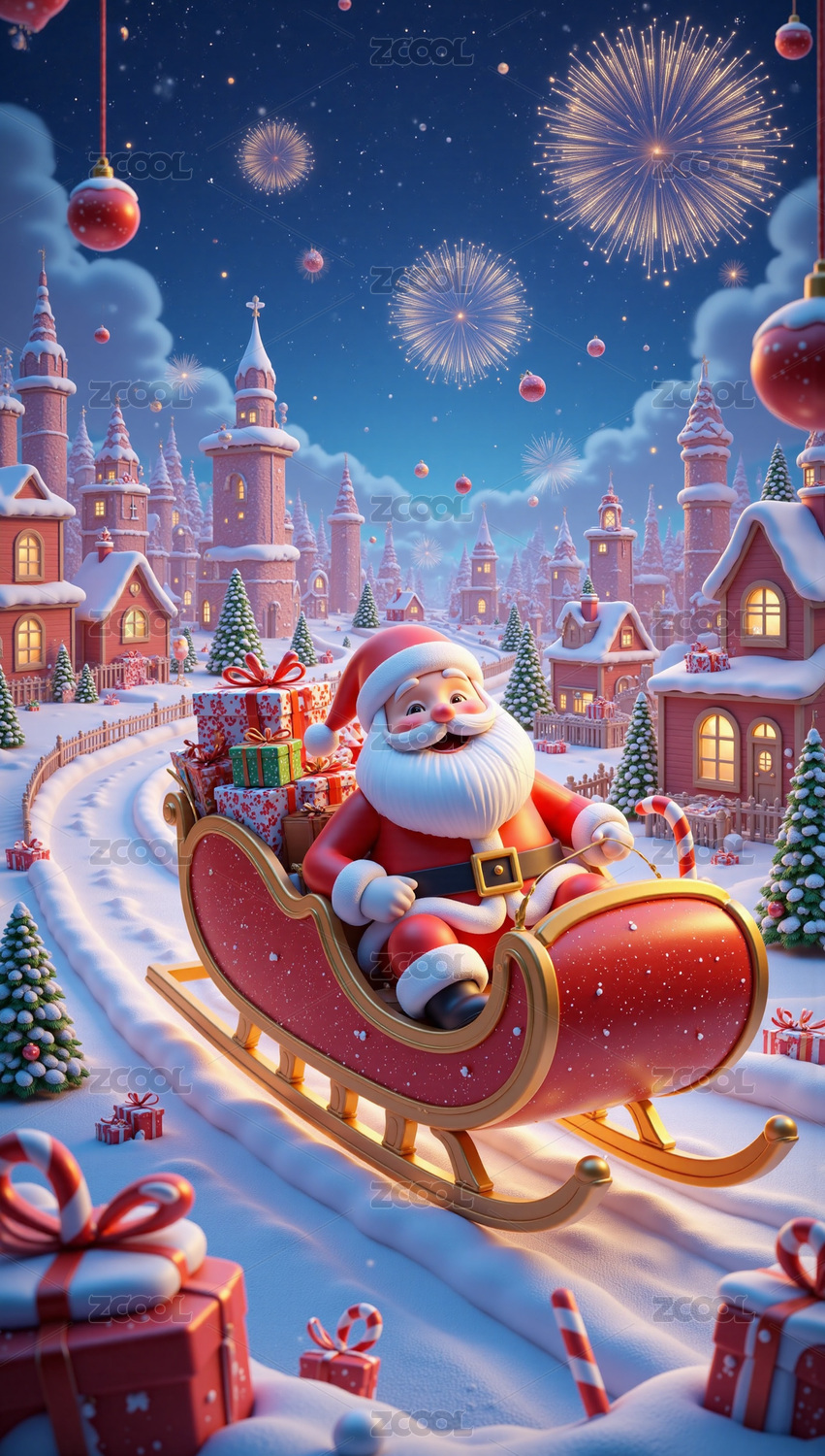 圣诞老人送礼物圣诞节快乐节日礼盒三维插画