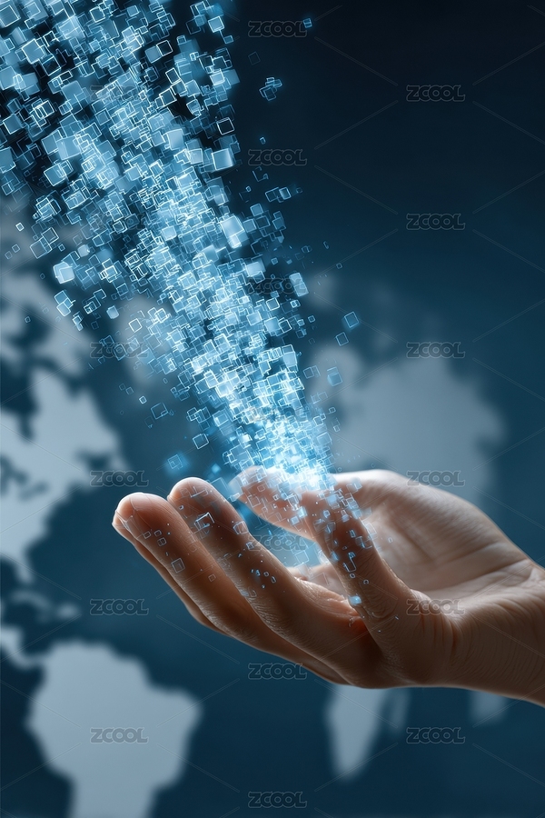 手掌释放数字方块科技感